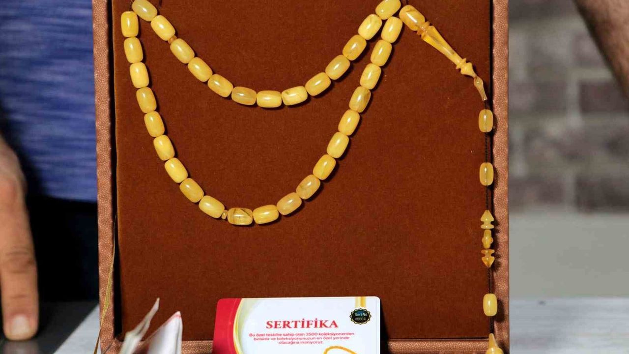 Tespihte herhangi bir kimyasal ve polyester katkısı olmadığını belirten Türkmenoğlu, "Bu tespihler sıkma kehribardan yapılıyor. Kaldıkça güzelleşiyor ve çektikçe rengi değişiyor. Bunlar özel tespih. Koleksiyonların koleksiyonunda yer alacağı özel bir parça" ifadelerini kullandı.