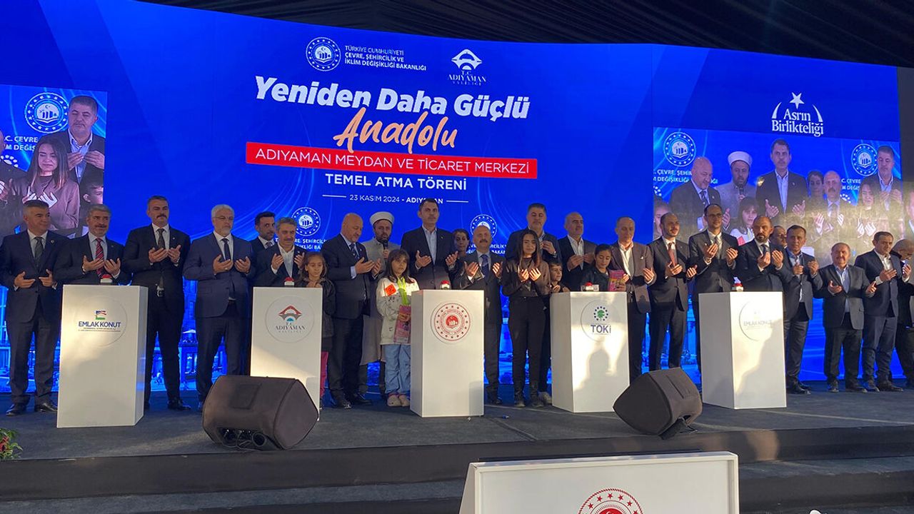 Çevre, Şehircilik ve İklim Değişikliği Bakanı Murat Kurum yaptığı konuşmada, "Göreve geldiğimizden bu yana, Adıyaman’ımızda, sizlerle 5. kez kucaklaşıyoruz. Önceki buluşmamızda sizlere bir söz vermiş, Adıyaman’ın kalbine, yeşiliyle, tarihiyle, bereketli dükkanlarıyla yeni bir meydan kazandıracağız demiştik. İşte şimdi de büyük bir huzurla verdiğimiz sözü tutuyor, yeniden daha güçlü Anadolu diyor, Adıyaman Meydan ve Ticaret Merkezi’nin temellerini atıyoruz. 6 Şubat 2023’te sabaha karşı, milletimizin her ferdini hüzne boğan büyük bir felaket, büyük bir acı yaşadık. Ben tüm deprem şehitlerimize Allah’tan rahmet diliyorum. Biliyorum ki, kalbimizde açılan yara hiçbir zaman kapanmayacaktır. Ama yine biliyorum ki, bu güçlü devlet, bu vefalı millet şehitlerinin emanetlerine sahip çıkacaktır" ifadelerini kullandı.