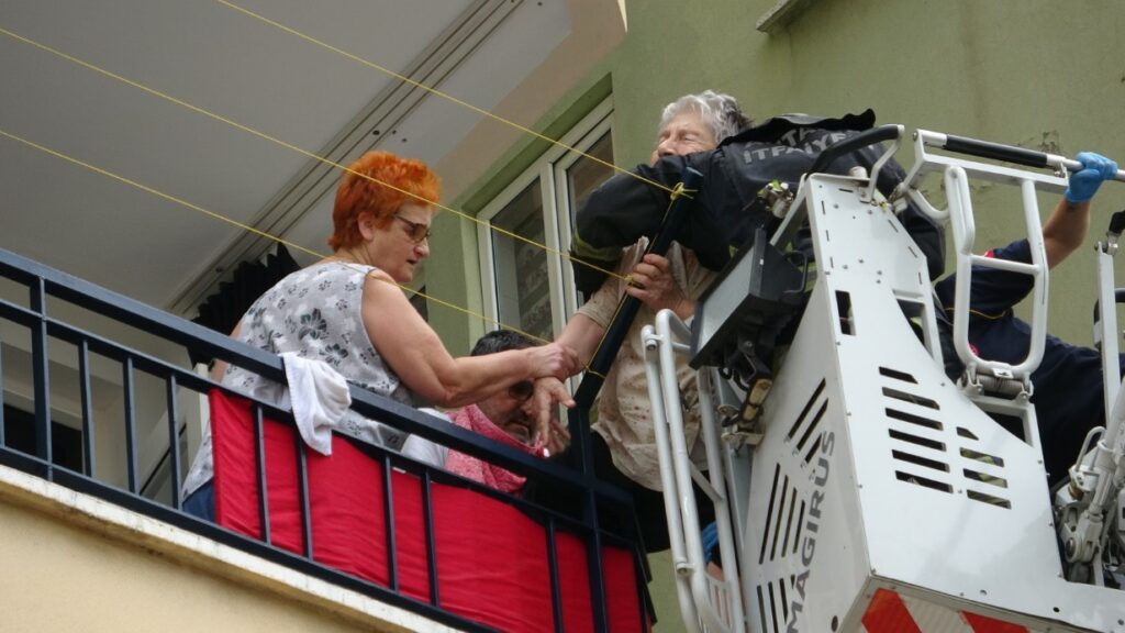 Gökyüzünü siyah dumanların kapladığı yangını gören vatandaşlar 112 Acil Çağrı Merkezi’ne bilgi verirken ihbarla olay yerine çok sayıda itfaiye, ambulans ve polis ekibi sevk edildi. Üst katlarda ki bir daireye eşya taşımak üzere adreste bulunan asansörlü nakliye aracı sahibi, mahsur kalanları kurtarmaya çalıştı. Kısa sürede verilen adrese gelen itfaiye ekipleri yangına hızla müdahale ederek mahsur kalanları kurtarmak için çalışma başlattı. Yangının başladığı evin üst katındaki balkonda mahsur kalan 2 kadın sepet yardımıyla aşağıya indirildi.