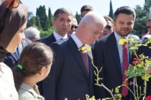 "15 Temmuz gecesi yazılan zafer, çok şanlı bir zaferin adı olmuştur"Törende konuşan Ticaret Bakanı Ömer Bolat, "Ölen kahraman şehitlerimizi yad ediyoruz, Kuran-ı Kerim tilaveti ve dualar eşliğinde, onlara minnet borcumuz var. Tüm Türkiye’de o gece saygıdeğer Cumhurbaşkanımızın çağrısıyla meydanlara inen kahraman halkımız kötü niyetli zalim darbecileri püskürtmeyi başarmıştır ve hem şanlı tarihimizde, hem dünyada destan yazmıştır. Bu destan; hürriyet, milli iradeye sahip çıkma, inancına sahip çıkma, bu dünya tarihine yazılan bir destan olmuştur. Bu uğurda; vatan toprakları için, inancı için, canını seve seve feda eden 253 kahraman şehidimizi rahmetle, minnetle anıyoruz. 3 bine yakın gazilerimizi şükranla yad ediyoruz, onlara acil şifalar sağlıklı ömürler diliyoruz ve milyonlarca halkımıza şükranlarımızı sunuyoruz. Çünkü onlar meydanlara çıkıp darbecilere, tanklara, uçaklara, helikopterlere karşı göğüslerini siper ettiler. Halkın vergileriyle alınmış silahlarını halka doğrultan o zalimlere karşı vatanlarını, hürriyetlerini korumuşlardır. Yeni bir vesayetin doğmasını engellemişlerdir. Türkiye Cumhuriyeti tarihinde bin yıllık bu kutsal topraklardaki tarihimizde gerçekten 15 Temmuz gecesi yazılan zafer, çok şanlı bir zaferin adı olmuştur. Bu milletin zaferidir ve milli birliğin zaferi olmuştur. Şehitlerimizi hiçbir zaman unutmayacağız ve unutturmayacağız. 15 Temmuz’daki hain darbe girişimini de unutturmayacağız. O gece kaygıyla, endişeyle başladı ama esenlikle, zaferle destanlarla son buldu ve Cumhuriyetimiz, ülkemiz, vatanımız İnşallah bu topraklarda ilelebet payidar olacak; halkımız vatan topraklarını her şartlarda sahip çıkacağını bir kez daha o gecede gösterdi. Geçmişte de gösterdi, bundan sonra da gösterecektir. Ne mutlu ki, aziz vatanımızda şanlı milletimizle beraber bu topraklarda yaşıyoruz ve Cenab-ı Allah’a şükrediyoruz" şeklinde konuştu.