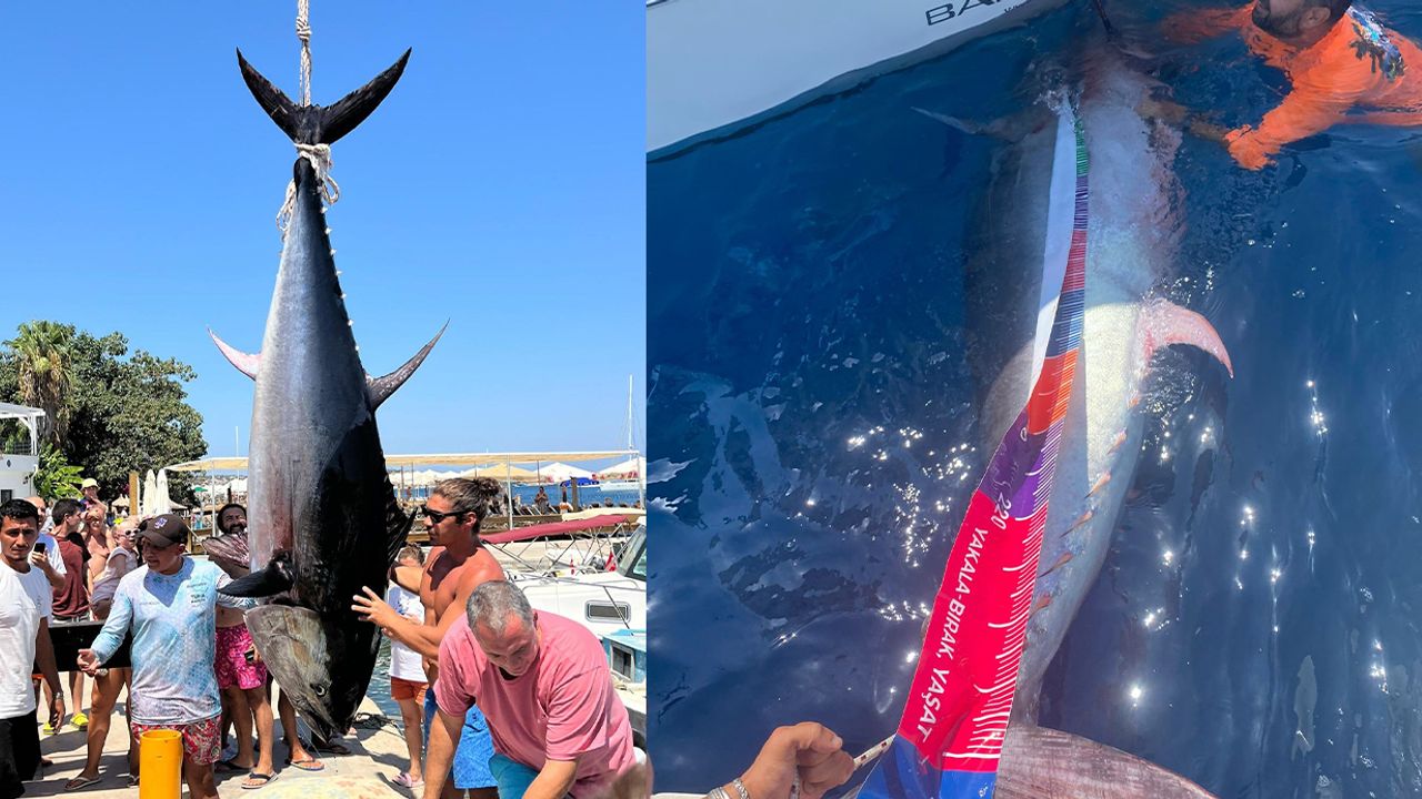 Didim açıklarında avlanan balıkların oltasına sabah 08.00 sıralarında büyük bir balık takıldı. 4 amatör balıkçı, dev balığı yukarı çekmek için çaba harcadı fakat başarılı olamadı. Dev balık, amatör balıkçıların 7 metrelik teknesini 5 saatte Didim açıklarından Türkbükü açıklarına kadar sürükledi.