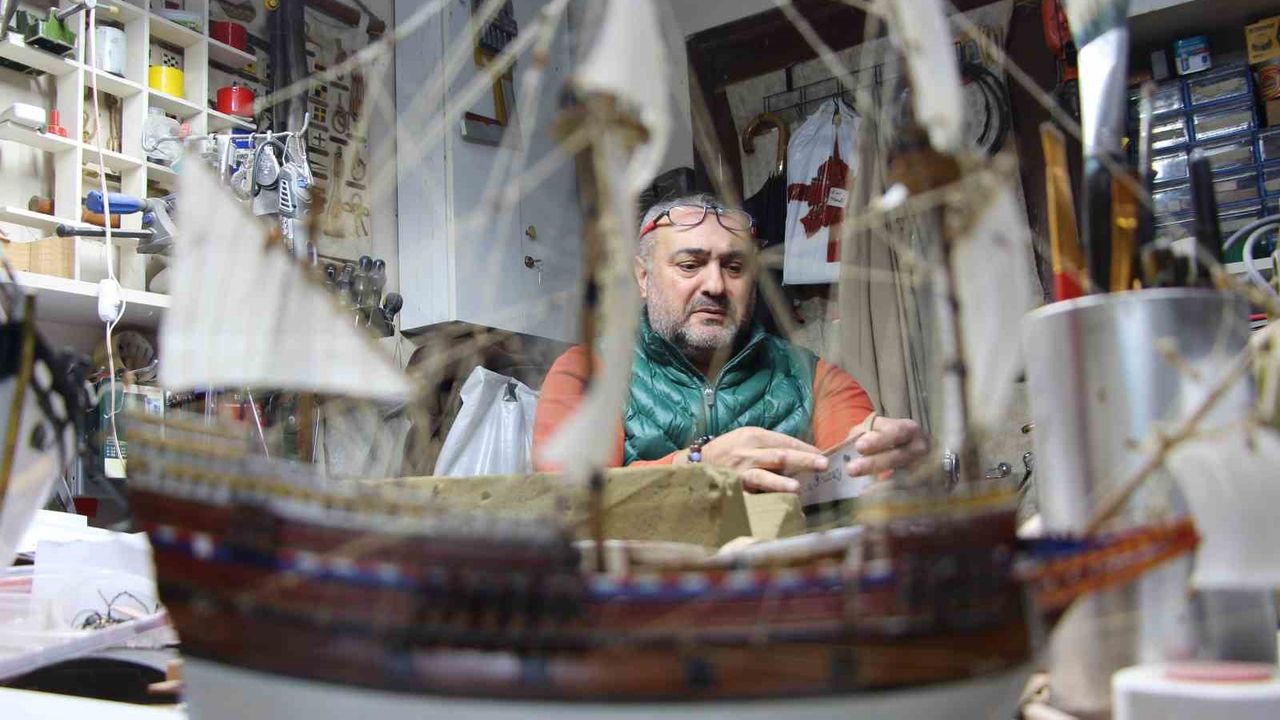 Trabzon’un Ortahisar ilçesindeki yaşayan Boğaçhan Gökhan Şatıroğlu (47), 5 yaşında dayısının kendisine oyma küçük tekne yapması ile ahşap sanatına ilgi göstermeye başladı. Bir süre gemi taşımacılığında çalıştıktan sonra aklının bir köşesinde kalan ahşap sanatını yapmak için kolları sıvayan Şatıroğlu, evinde maket gemiler yapmaya başladı. Zaman zaman arkadaşlarının marangoz atölyelerine giderek kesme işleri yapan Şatıroğlu, gelen talepler nedeniyle bir atölye açmaya karar verdi. 40 metrekarelik atölyesinde ahşap hünerlerini sergileyen Şatıroğlu’nun el emeği ürünleri yurtdışından ilgi gördü. Sosyal medya aracılığıyla ile gelen siparişlere yetişemeyen Şatıroğlu, Amerika, İngiltere, Fransa, Almanya ve Japonya gibi ülkelere maket gemiler tasarladı. Devasa teknelerin birebir ölçekli planlarına göre gemi maketi yapan Şatıroğlu, 17 senedir 40 metrekarelik dükkanından yurtdışına çok sayıda maket gemi gönderdi. Gemi maketinin yanı sıra ahşap saat, oyma sanatı ve resim gibi yetenekleri de bulunan Şatıroğlu, çocuklarının da ahşap sanatına ilgi gösterdiğini söyledi.