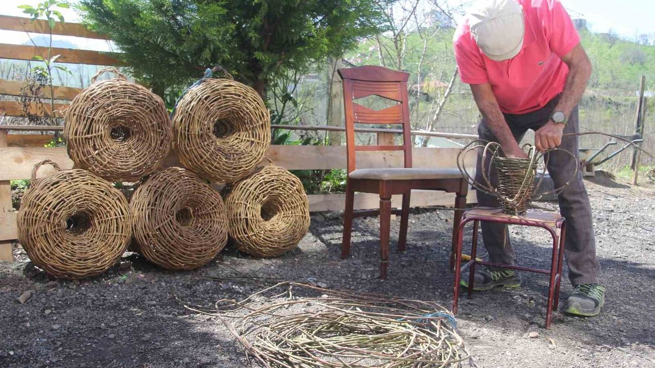 Çocukluk yıllarında balık sepeti ören bir komşusunu izleyerek bu zanaatı öğrendiğini belirten Özcan, "Bununla derede, denizde, yaylada balık tutuluyor, her yere atılır. Bunun içerisine ekmek ve taş konuluyor, sapına ip bağlanıyor ve suya atılıyor. Sonrasında sabah gidip balıklar alınıyor" diye konuştu.
