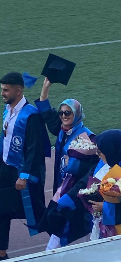 "Oğlumla bir hafta arayla mezun olduk"Mezuniyet töreni sonrası duygularını anlatan Bahar Şanlı, "35 yıllık bir hayali gerçekleştirmek için üniversiteye başladım. Tarih Bölümünü birinci olarak bitirdim. Çok mutluyum. Üniversitede okurken zorlandık. Zorlandığımız çok zamanlar oldu. Çok zor şartlarda ders çalıştığımız dönemler oldu ama severek okuduğum ve sonunda başarı elde ettiğim için gayet mutluyum. Okulumu bölüm birincisi olarak bitirdim. Bunu arkadaşlarıma göre yaşımın biraz daha olgun olmasına, olaylara farklı bakışıma bağlıyorum. Bir de çok azimli ve gayretliydim. Bu şekilde birinci oldum. Bundan sonra sırada yüksek lisans var. İnşallah yüksek lisansıma devam edeceğim. Oğlumla bir hafta arayla mezun olduk. Oğlum geçen hafta İngilizce Öğretmenliği bölümünden mezun oldu, bugün ben mezun oldum. Oğlumla okumak çok zevkliydi. Birbirimize destek olduk. Ben daha çalışkandım, daha istekli ve azimliydim ama oğlum benden daha akıllıydı. Daha az çalışarak daha iyi öğrenci oldu ve mezun oldu" dedi.