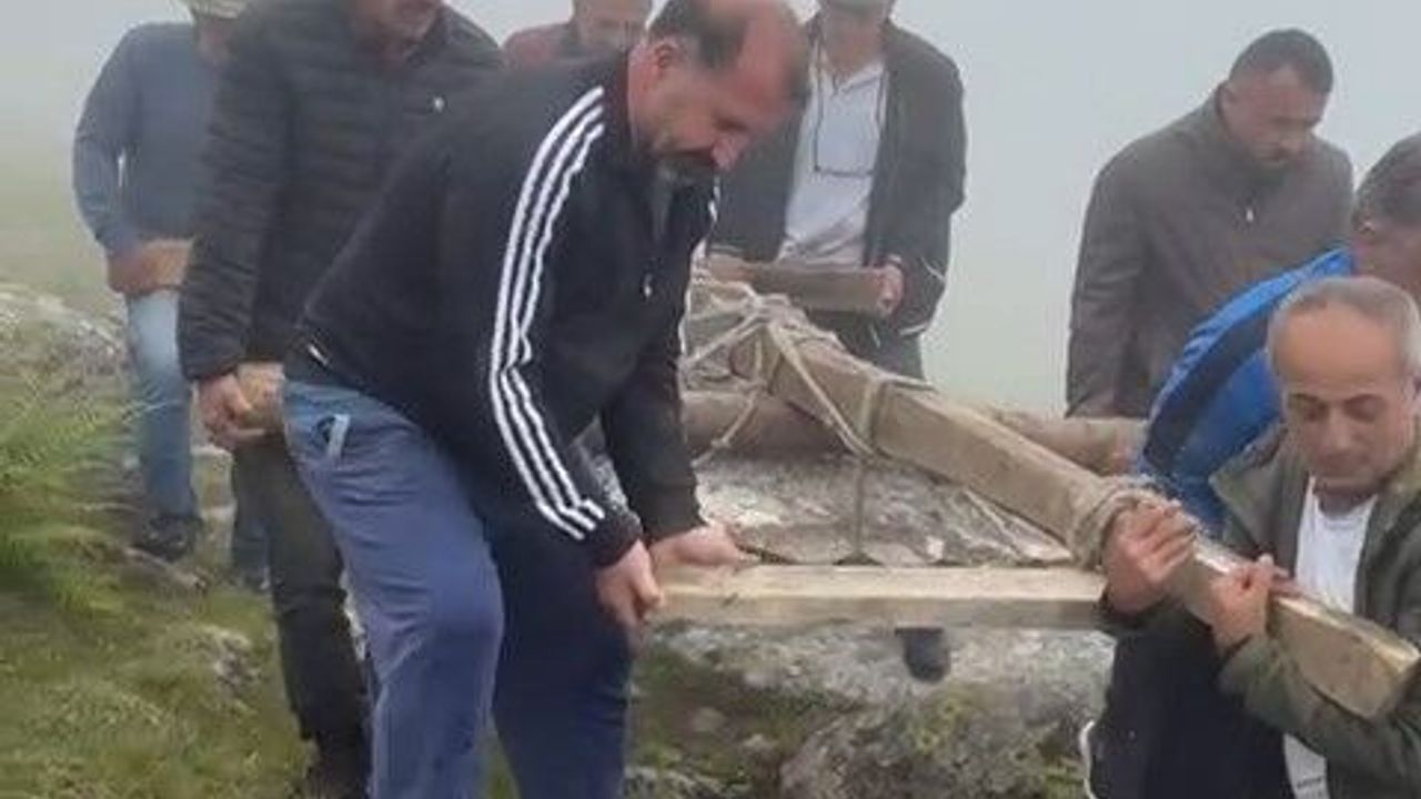 Rize’nin Çamlıhemşin İlçesine bağlı 2 bin 880 rakımdaki Kaçkar Yaylası Didi Köyü’nde yeni cami inşaat edildi. Caminin avlusunda vatandaşların çay sohbeti yapabileceği bir alan oluşturmak isteyen köy muhtarı Ahmet Kuyumcu, avluya doğal bir masa koymak istedi. Köy muhtarı Kuyumcu, yaylada dolaşırken 600 kilogram ağırlığında bir taş buldu. Bu taşı cami avlusuna taşımaya karar veren muhtar Kuyumcu, köyden topladığı 13 kişiyle birlikte taşın başına geldi. Odunlar ile yaptıkları taşıma sistemiyle 600 kilogram ağırlığında olan taşı yaklaşık 600 metre taşıyarak camiinin avlusuna getirdiler. Kuyumcu ve beraberindekiler o anları cep telefonu kamerası ile kaydederek sosyal medya hesaplarından paylaştılar.