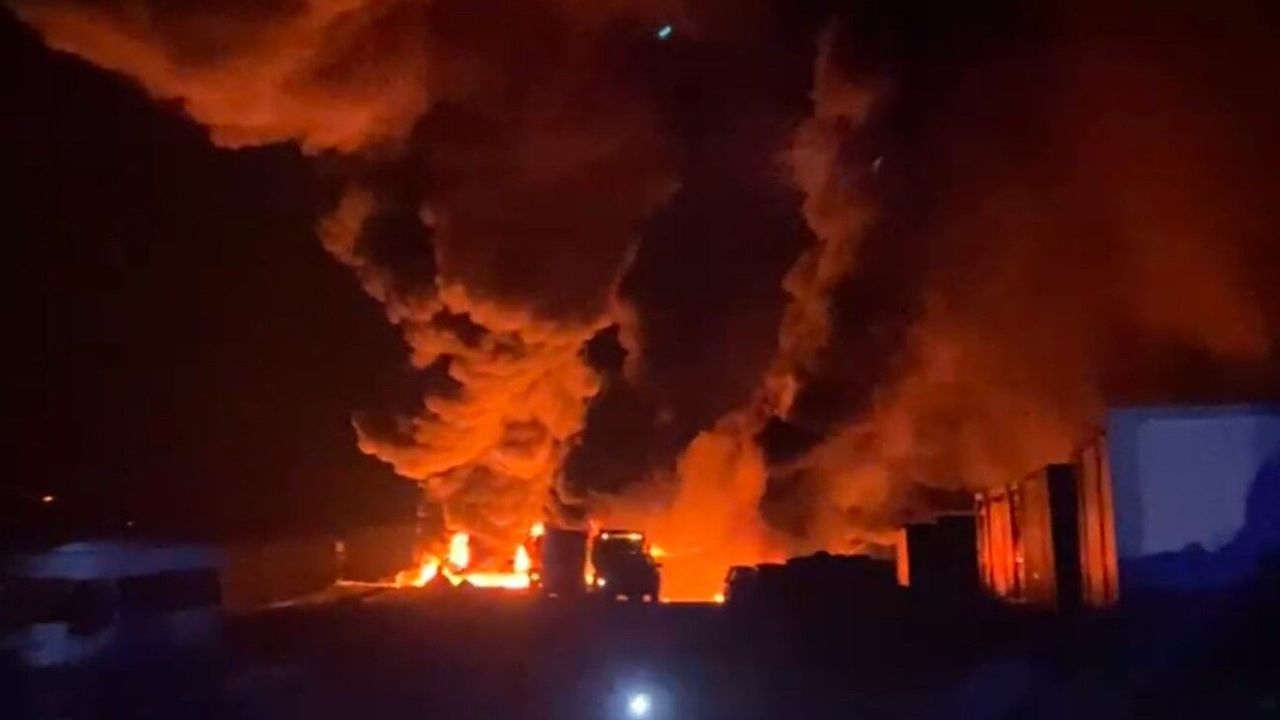 Tokat’ın Çamlıbel beldesine 4 kilometre mesafede bulunan Ege Altyapı AŞ’ye ait taş ocağının yakıt deposunda henüz bilinmeyen bir nedenle yangın çıktı. Kısa sürede büyüyen alevler, gece karanlığını aydınlatırken büyük hasara yol açtı. Yangında işletmeye ait 8 kamyon tamamen yanarak kullanılamaz hale geldi.