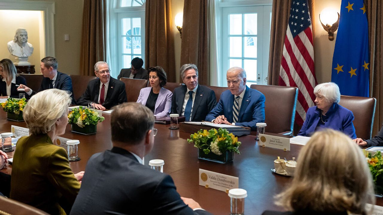 Amerika Birleşik Devletleri (ABD) Başkanı Joe Biden, Avrupa Birliği (AB) Konseyi Başkanı Charles Michel ve Avrupa Komisyonu Başkanı Ursula von der Leyen'i Beyaz Saray'da ağırladı. Yapacakları üçlü zirvenin öncesinde açıklamalarda bulunan Biden, gerçekleştirdikleri son toplantıda AB ile ABD arasındaki ortaklığı yeniden canlandırmaya karar verdiklerini belirterek, "Son iki yılda bu taahhüdümüzü yerine getirdik diye düşünüyorum" dedi. Ukrayna ve İsrail'e destek konusunda ülkesi ve AB'nin işbirliği içinde hareket ettiğine dikkat çeken Biden, "Putin'in saldırganlığı karşısında Ukrayna'nın cesur halkını desteklemek için birlikte hareket ettik. Ekonomik zorlukların üstesinden gelmek için birlikte hareket ettik ve Çin ile ilişkimize yön verecek standartlar oluşturduk. Ve Hamas'ın dehşet verici terör saldırısının ardından İsrail'i desteklemek için şimdi birlikte hareket ediyoruz" şeklinde konuştu. Gerçekleşecek toplantının içeriğine ilişkin de bilgi veren Biden, "Hem İsrail hem de Ukrayna'daki durumu tartışacağız. Temiz enerjiye geçişi desteklemek için birlikte çalışmak da dahil olmak üzere, ortaklığımızın tüm potansiyelini nasıl değerlendirmeye devam edeceğimizi tartışmayı sabırsızlıkla bekliyorum" ifadelerini kullandı. Biden adil olmayan şekilde ticareti yapılan çelik ve alüminyum ithalatı ile devam eden kritik maden müzakereleri ve riski kadar avantajları da bulunan bir konu olan yapay zekanın da masada olacağını ifade etti.