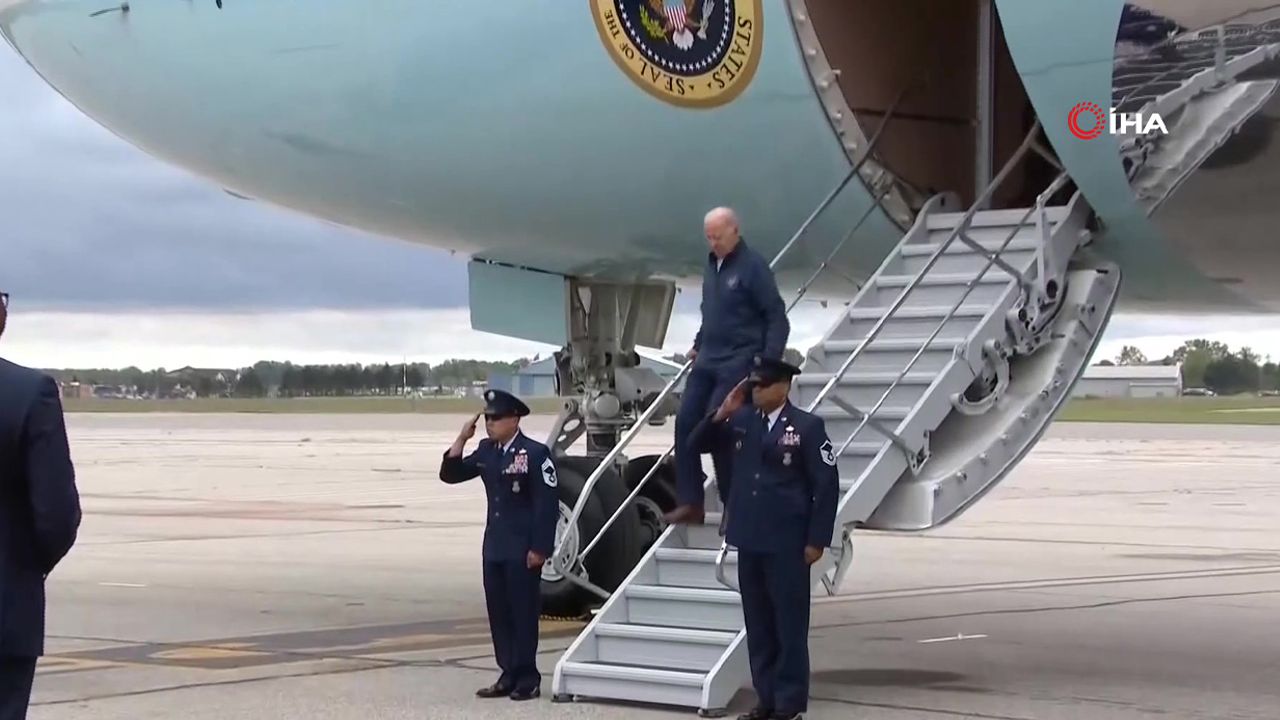 Biden, bir kez daha düşüyordu. Başkanlık uçağı Air Force One ile Michigan’a gelen Başkan Biden, uçağın merdiveninden indiği sırada ayağının kayması sonucu az daha düşüyordu. Son anda dengesini sağlayan Biden, merdivenlerden inerek kendisini karşılayanlar ile selamlaştı.