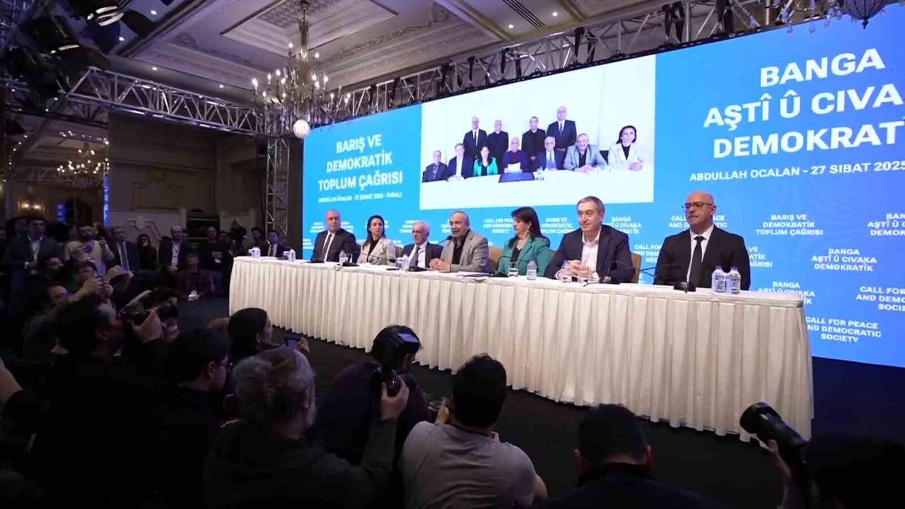 İstanbul’a dönen heyet, Taksim’de bir otelde Öcalan’ın silah bırakma çağrısını açıkladı.