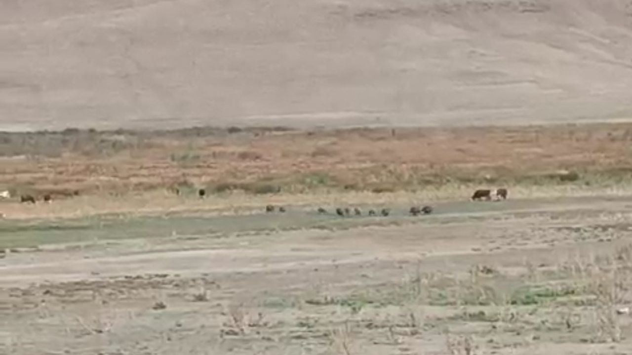 Van’ın Özalp ilçesinde aç kalan domuz sürüsü mahalleye indi.