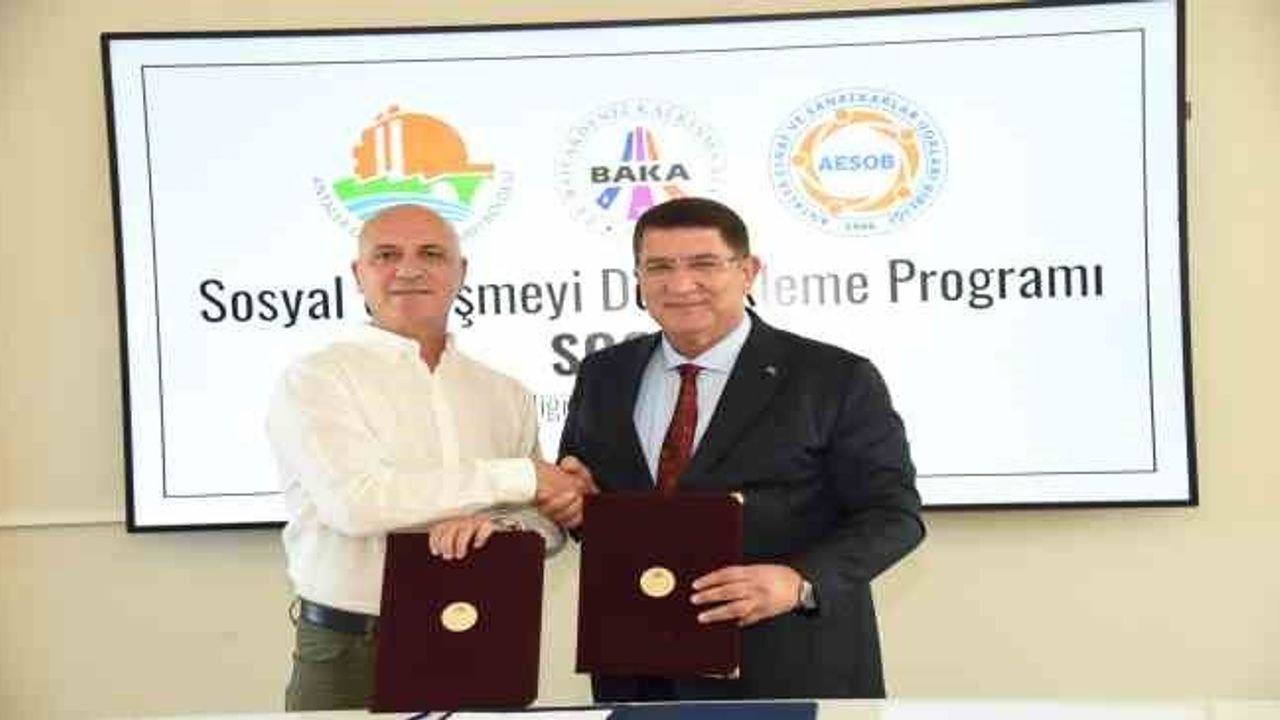 İmza törenine AESOB Başkanı Adlıhan Dere, proje ortağı Antalya Organize Sanayi Bölgesi (AOSB) Başkanı Ali Bahar, Yönetim Kurulu Üyeleri, Heyet Üyeleri ve Oda Başkanları katıldı.