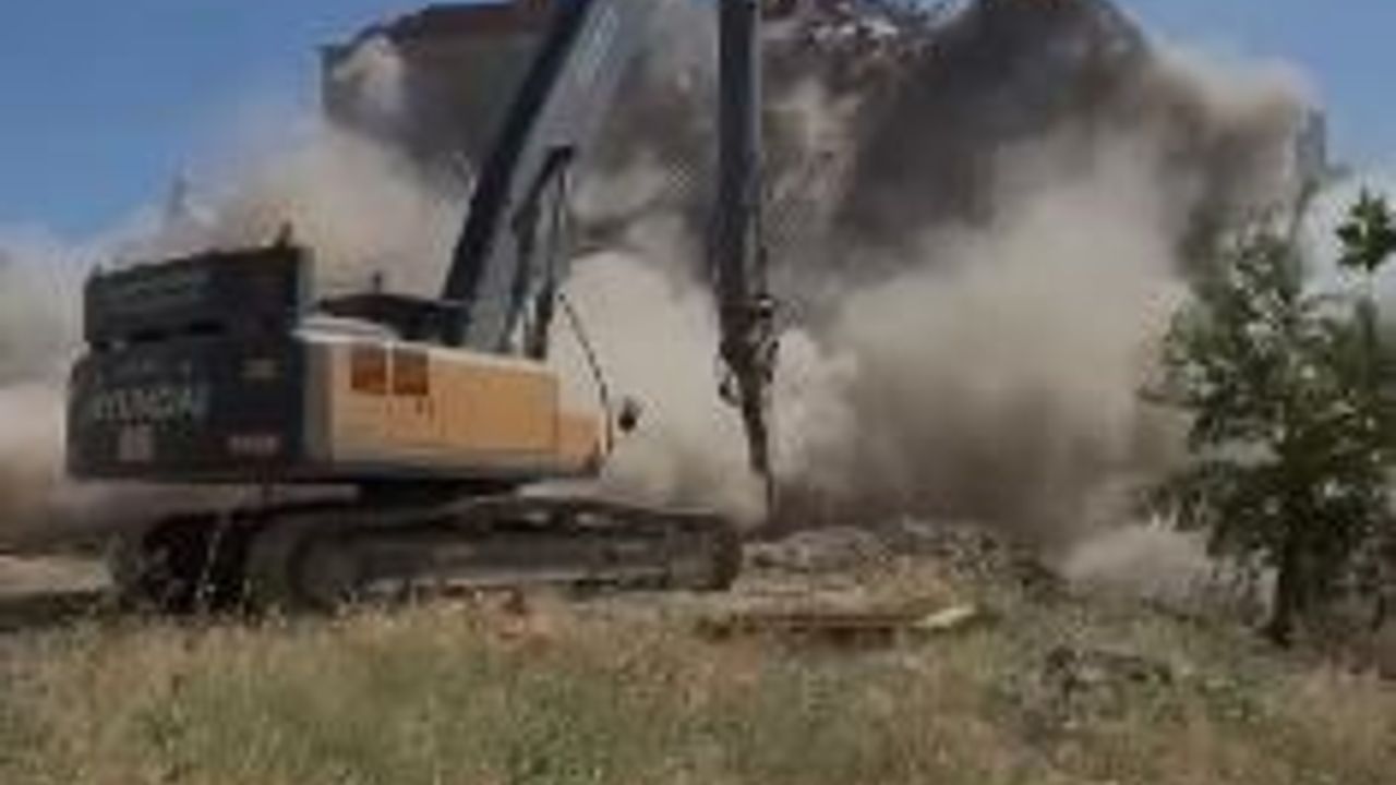 Kahramanmaraş’ta 6 Şubat 2023’te meydana gelen yıkıcı depremlerden etkilenen iller arasından bulunan Elazığ’da ağır hasarlı binaların yıkımı devam ediyor. Bu çerçevede, merkeze bağlı Yeni Mahalle’de yıkımına başlanan 5 katlı bina, iş makinesinin makasını vurmasıyla bir anda yerle bir oldu. Ortalık toz bulutu ile kaplanırken o anlar cep telefonu kamerasına saniye saniye yansıdı.