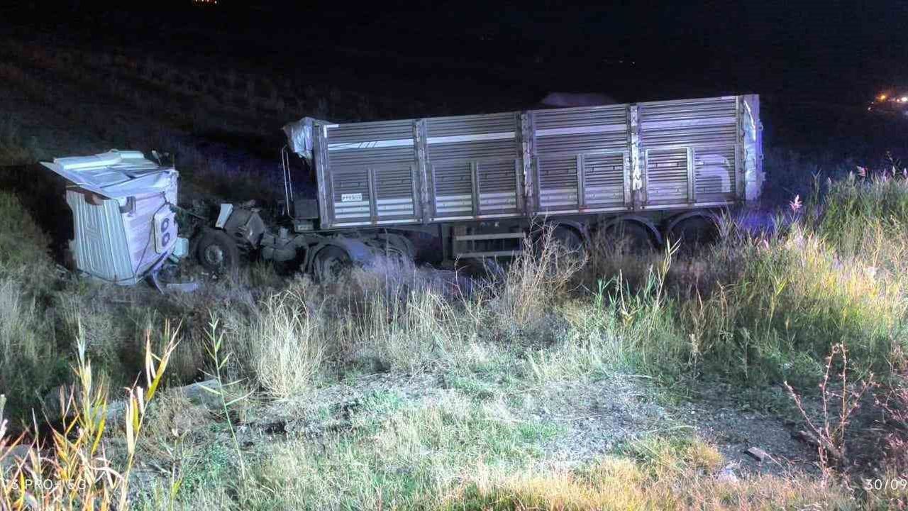 Ağrı’nın Patnos ilçesinde meydana gelen trafik kazasında sürücüsünün direksiyon hakimiyetini kaybeden Tır şarampole devrildi.