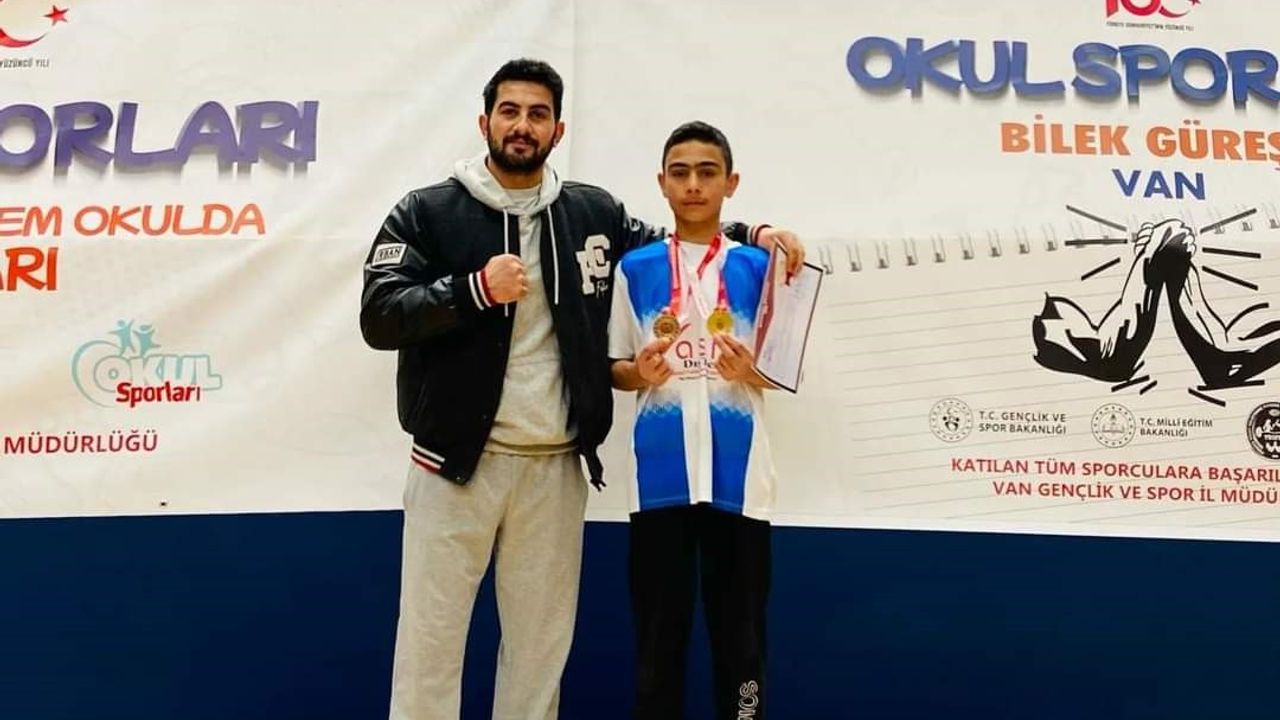 Bitlis’in Ahlat ilçesindeki Ovakışla Cumhuriyet Ortaokulu öğrencilerinden Simar Sert, Yıldız Erkekler Bilek Güreşi Doğu Anadolu Bölge Turnuvası’nda birinci oldu.