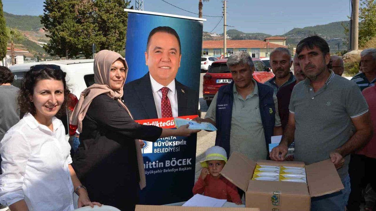 Antalya Büyükşehir Belediyesi tarafından Alanyalı çiftçilere yapışkan tuzak dağıtımı yapıldı.