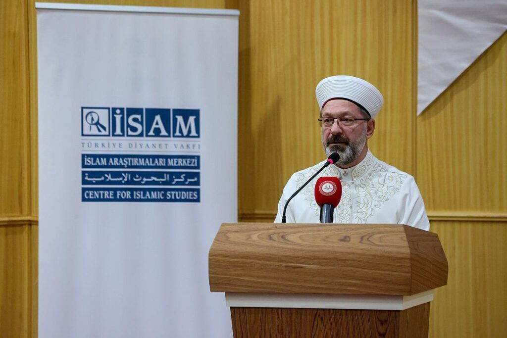 İslam Araştırmaları Merkezi (İSAM) Dr. Tayyar Altıkulaç Konferans Salonu’ndaki programda konuşan Başkan Erbaş, Türkiye yüzyılı vizyonunun küresel krizlerle kuşatılmış insanlığın çıkış yolunu ifade ettiğini belirterek, “Türkiye’nin öncülüğünde yeni bir medeniyetin inşası noktasında hepimize çok büyük görevler, çok önemli sorumluluklar düşüyor. Zira söz konusu idealin, güçlü motivasyonu, en büyük imkanı, en kapsamlı zemini, inancımız ve değerlerimizdir.” dedi.