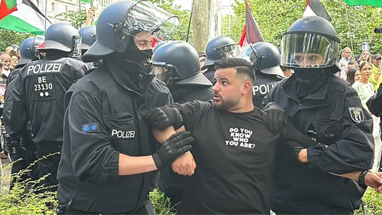 Gösteride "Filistin'e özgürlük", "Terörist İsrail", "Almanya finanse ediyor İsrail bombalıyor" ve "İşgale hayır" sloganları atıldı. Gneisenaustrasse metro istasyonuna gelindiğinde, polis göstericilere müdahale ederek çok sayıda kişiyi gözaltına aldı.