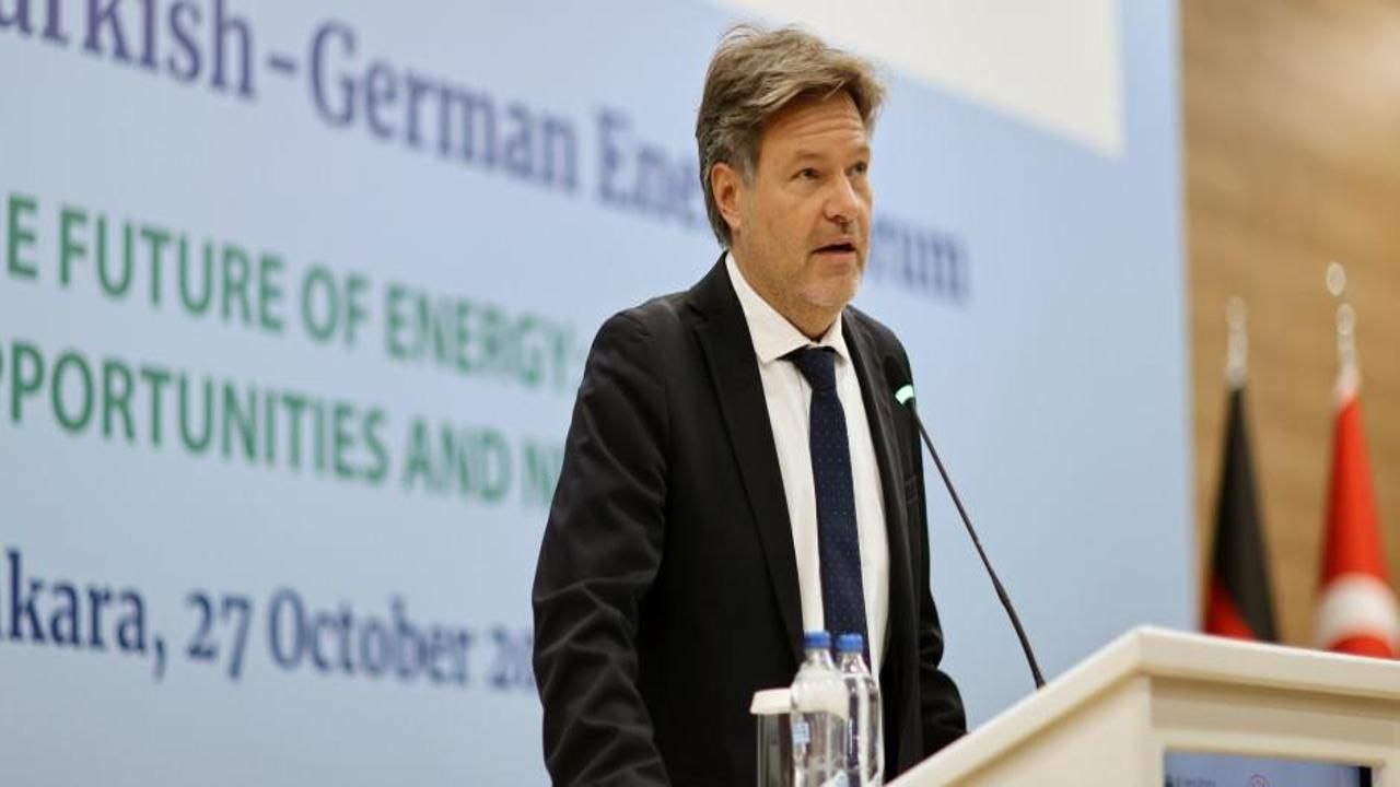 Habeck, Eti Maden Genel Müdürlüğünde Enerji ve Tabii Kaynaklar Bakanı Alparslan Bayraktar'ın da katılımıyla düzenlenen 5. Türk-Alman Enerji Forumu'nda konuştu.
