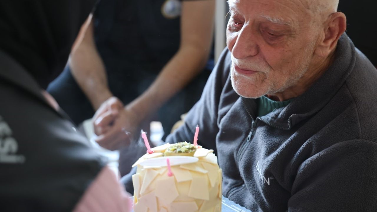 Kartepe Belediyesi Alo Evlat Sağlık Kulübü ekiplerince Uzunçiftlik Mahallesi’ndeki evinde ziyaret edilen Mehmet Onursalan, belediye ekiplerinin hazırladığı sürpriz karşısında mutluluk yaşadı.