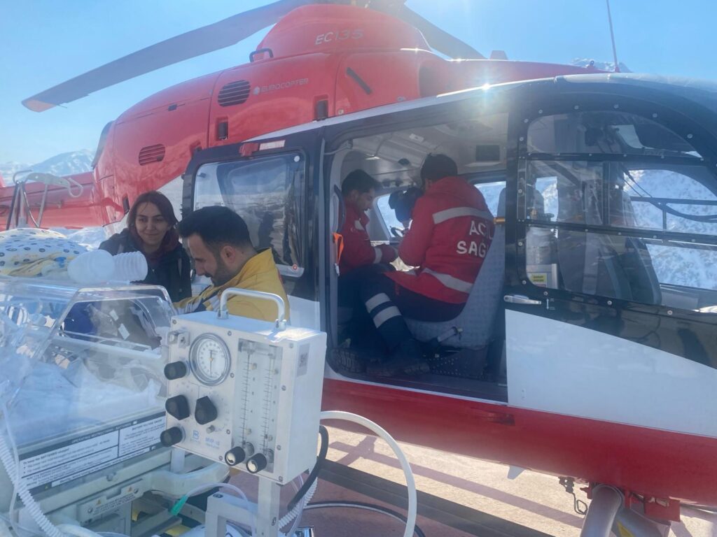 Van İl Sağlık Müdürlüğünden yapılan açıklamada, "Şemdinli Devlet Hastanesinde, metabolik asidozu tanısı ile tedavi gören 8 günlük yeni doğan bebek hastanın ileri tetkik ve tedavisi için helikopter ambulans ile SBÜ Van Eğitim ve Araştırma Hastanesi nakli sağlanmıştır." denildi.