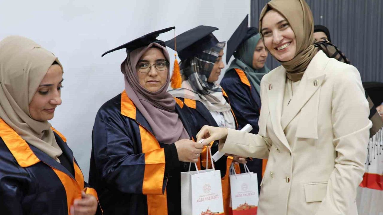 Ağrı Valiliği himayelerinde, İl Milli Eğitim Müdürlüğü koordinesinde "Anne Akademisi Projesi" kapsamında açılan okuma-yazma kursunda başarılı olan kursiyerlere yönelik mezuniyet töreni düzenlendi.