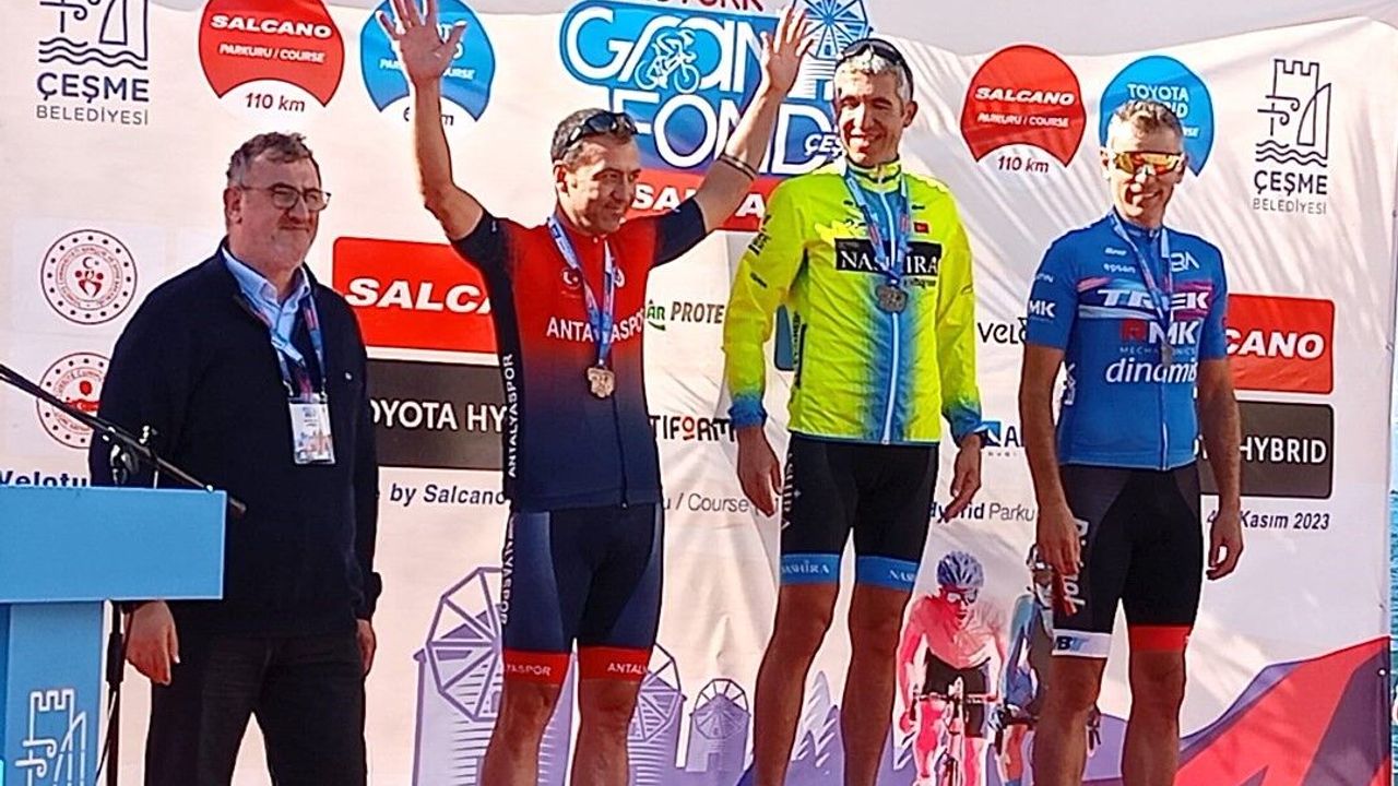 Çeşme Gran Fondo Bisiklet Yarışlarında, kendi yaş kategorisinde üçüncü olan Turgay Germen, takımını kürsüye taşıdı.
