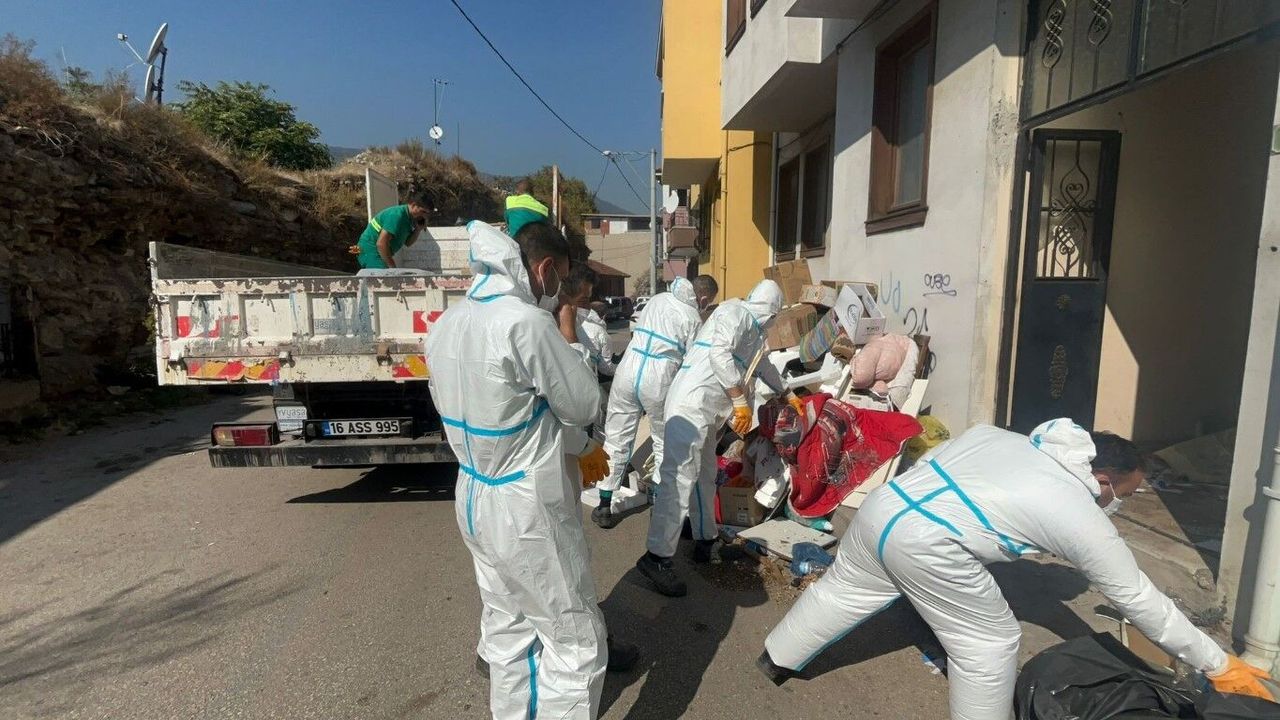 Bursa’nın merkez Osmangazi ilçesi Kavaklı Mahallesi Kaleboyu Caddesi üzerinde bulunan bir evden kötü kokuların yayıldığını belirten mahalle sakinleri durumu karakola bildirdi. Savcılık kararıyla bugün eve giren Osmangazi Belediyesi Temizlik İşleri Müdürlüğü’ne bağlı ekipler, evin kapısını açtıklarında karşılaştıkları manzaraya inanamadı.