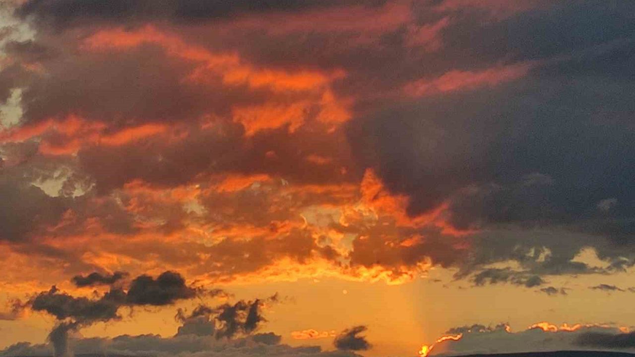 Ardahan’da gün batımıyla birlikte gökyüzü adeta kızıla boyandı.