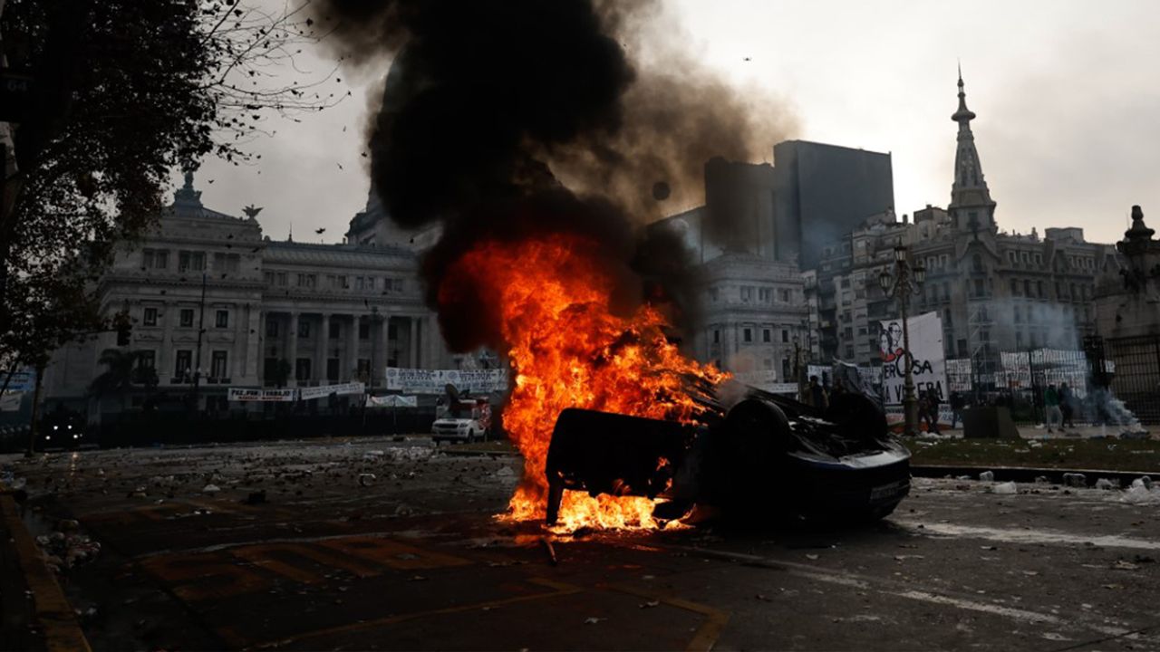 Reformun halka zarar vereceğini belirten göstericiler, “Ülkemiz satılık değil” sloganları atarak paketin görüşüldüğü Kongre'ye yürüdü. Ancak polisin müdahalesi gecikmedi. Göstericiler göz yaşartıcı gaz ve tazyikli su kullanan polise taş ve molotof kokteyli attı, ortalık savaş alanına döndü. Polisin gazlı müdahalesinden etkilenen 5 muhalif milletvekili hastaneye kaldırıldı. Onlarca kişiye ise olay yerinde tıbbi müdahale yapıldı. Yetkililer, çıkan çatışmada en az 20 polisin yaralandığını, 15 kişinin gözaltına alındığını, ayrıca göstericilerin 2 aracı ateşe verdiğini belirtti.