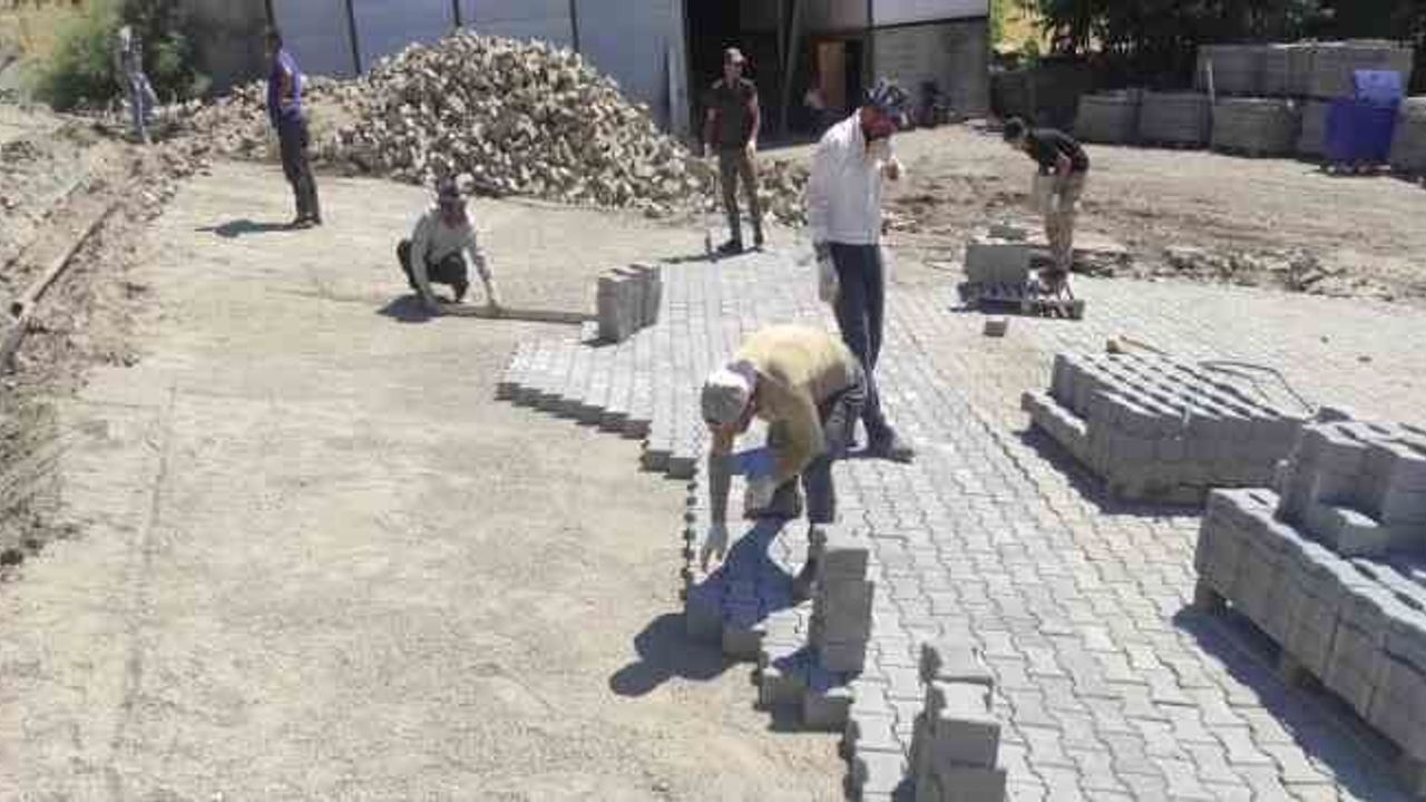 Batman’da helal ekmek parası kazanmak için 45 derece sıcaklığa aldırış etmeyen işçiler, güneşin altında parke taşı döşeyerek ailelerinin geçimini sağlıyor.