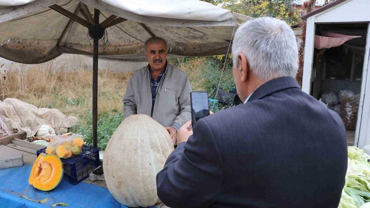 Sivas’ta bir çiftçinin ata tohumundan yetiştirdiği 51 kilogramlık dev bal kabağı ilgi odağı oldu.