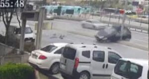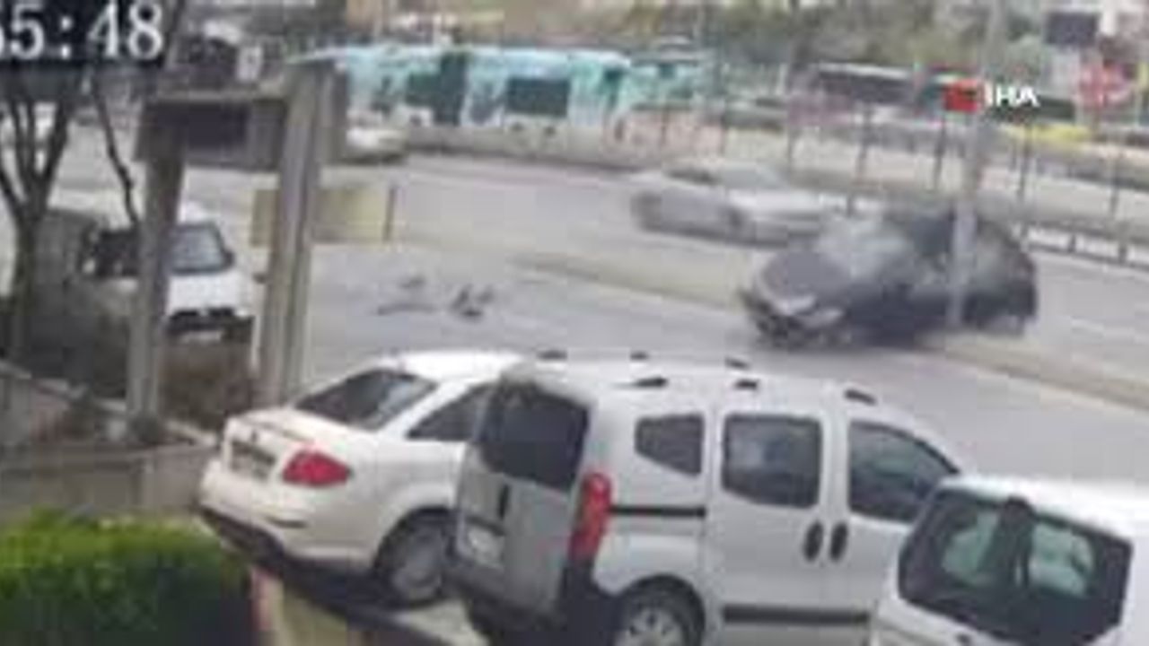 Yaşanan kaza güvenlik kameralarına da yansıdı. Görüntülerde metrobüs bariyerine çarpan otomobil savruluyor. Beton bariyerleri aşan otomobil yan yola geçerek duruyor.