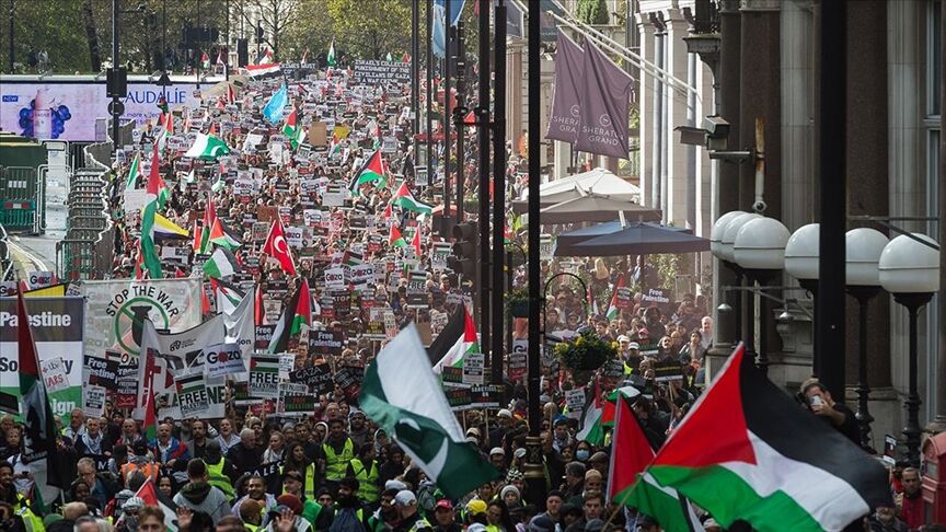 İngiltere'de 14 Ekim'den beri her cumartesi yüz binlerin katıldığı Filistin dayanışma eylemlerine yasaklama girişimleri yaşandı.