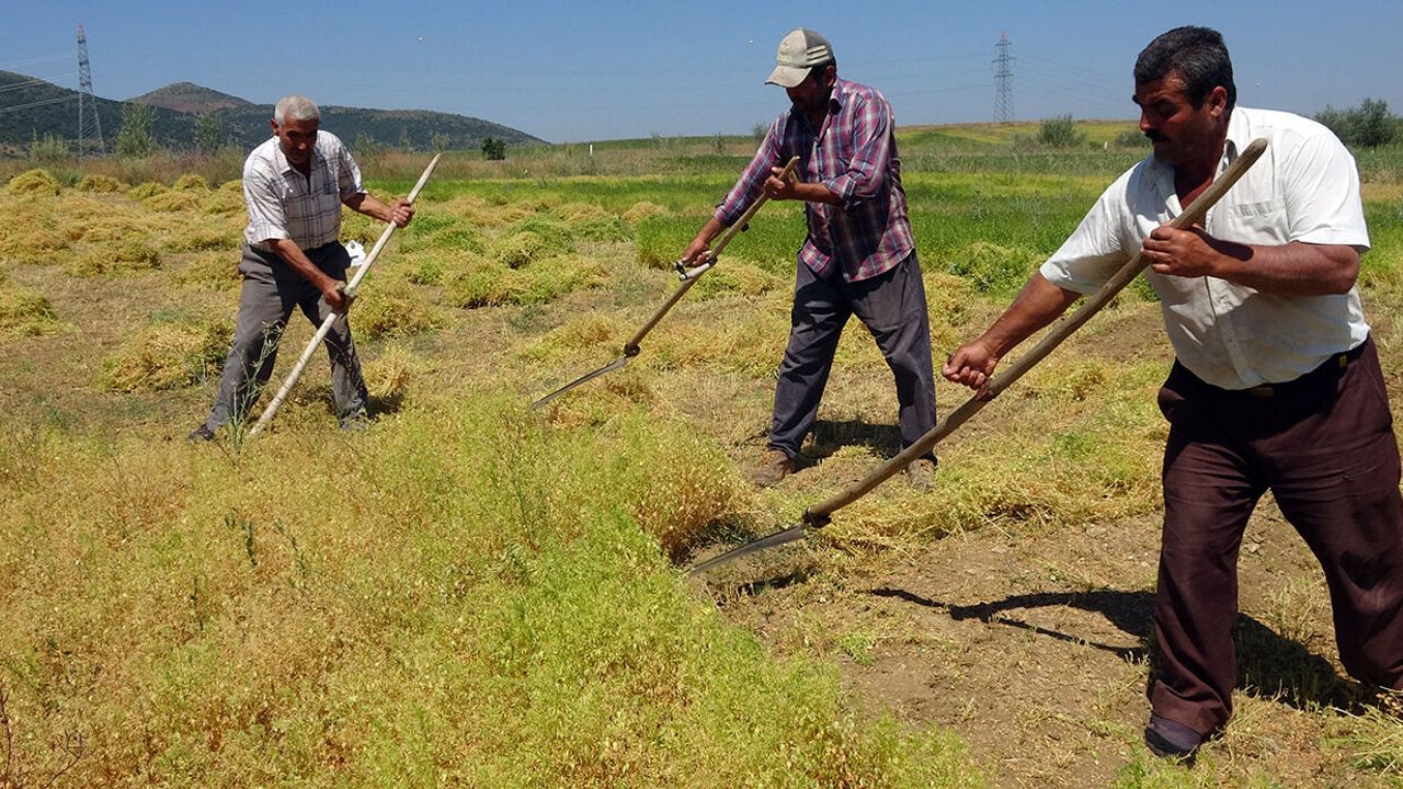 Türkiye’de yeşil mercimek üretiminde ilk sıralarda yer alan Yozgat’ta çiftçiler, hasat sezonunu açtı. Kimi çiftçi makine yardımıyla yeşil mercimek hasadı yaparken, kimileri de geleneksel yöntemlerle tırpan yardımıyla hasada başladı. Teknolojinin gelişmesiyle birlikte sayıları günden güne azalan ve geçimlerini tırpan işiyle sağlayan işçilerin de yeşil mercimek hasadıyla birlikte zorlu mesaileri başladı. Sabahın erken saatlerinde işe başlayan tırpan işçileri, 30 dereceyi bulan sıcak havanın altında çalışmaya devam ediyor. Günlüğü 800 ila bin lira arasında değişen yevmiye ile çalışan tırpan işçileri, Yozgat’ın merkeze bağlı Çalatlı köyünde bereketli topraklarda rızıklarını çıkarıyor.