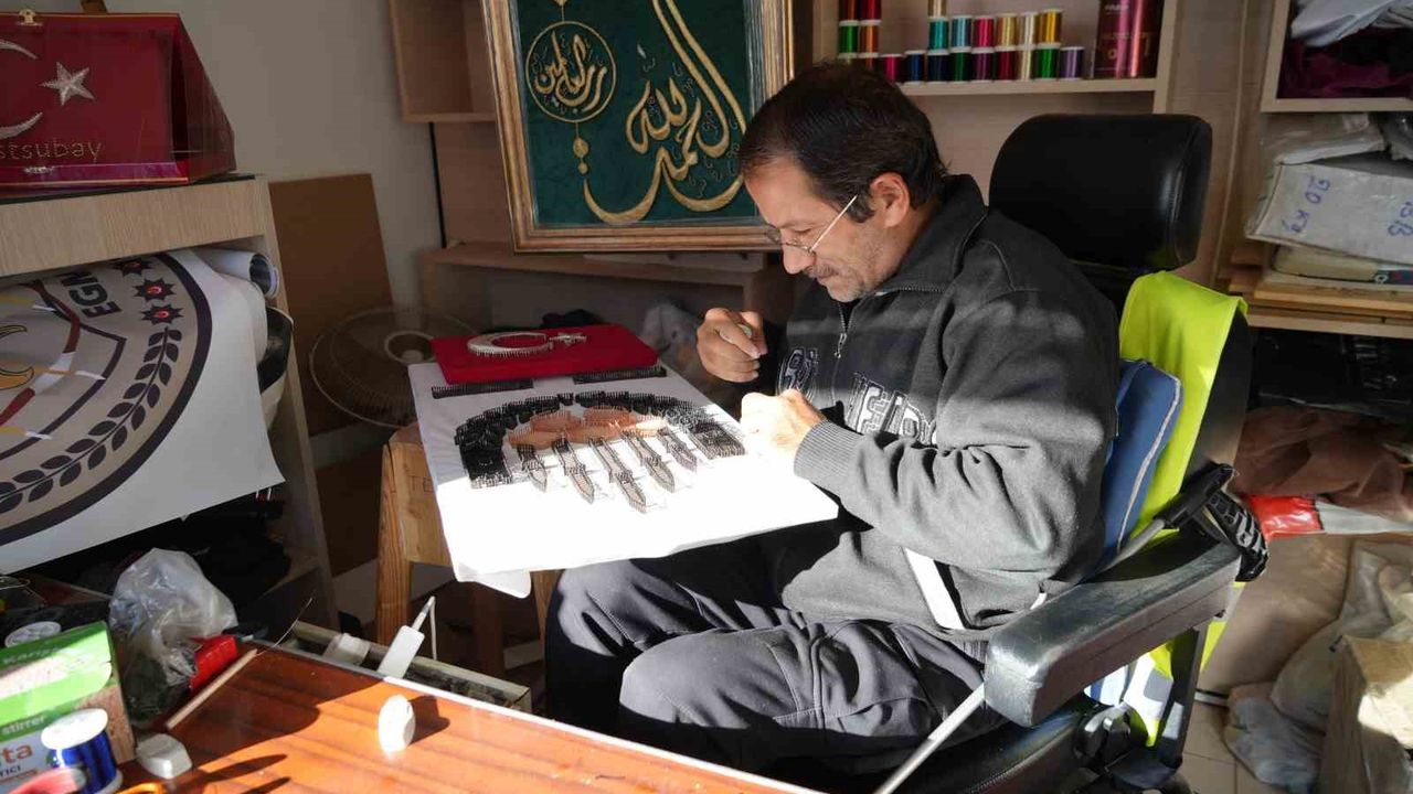 Filografi sanatının tedavi sürecini hızlandırdığını ifade eden Suat Can, “8 yıl önce geçirdiğim kaza sonucu omurilik felci oldum. 2020 yılında tekrar bir kaza daha yaşadım. Omurgada kırık meydana geldi. Toplam 12 tane vida ve platinler var belimde. Bel altımda şuanda kısmi felçler var. 7 yıldır da filografi ile uğraşıyorum. Filografi ile uğraşmamda ki en büyük nedenlerden biri rehabilite edici özelliği. Niyetimiz bu dünyada hoş bir seda bırakmak hem de insanlarımıza faydalı olabilirsek ne mutlu bize. Özellikle engelli arkadaşlarımızın farklı dallarda uğraşabilecekleri muhakkak bir şeyler vardır. Hayatımızda her türlü zorluklar meydana gelebilir ama hiç birinde de hayata küsmememiz lazım. Her şeyin üstesinden devletimiz, milletimiz ile el ele vererek gelmemiz mümkün. Yeter ki azim olsun. Azmin elinden hiçbir şey kurtulmaz. Filografiyi insanlarımız duydukça, ilgi gösterdikçe potansiyel oluşmaya başlıyor. Üç beş derken geniş kitlelere ulaşmak söz konusu oluyor. Ne kadar çalışırsak Rabbimiz o kadar imkan sunar. Yeter ki çalışalım” dedi.
