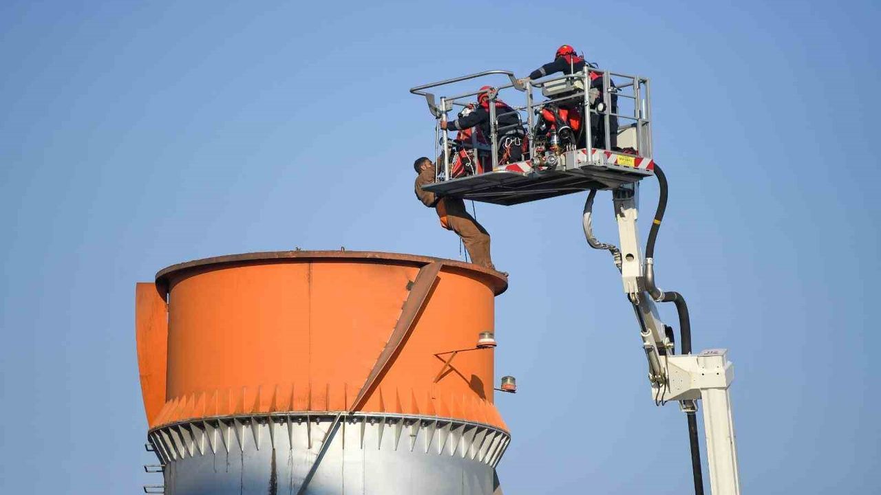 Olay, Bornova ilçesi Ankara Caddesi üzerindeki bir çimento fabrikasında meydana geldi. Fabrikanın 70 metre yüksekliğindeki bacasına temizlik için çıkan 2 işçi, iskelenin çökmesiyle baca içerisinde mahsur kaldı. İhbar üzerine olay yerine İzmir Büyükşehir Belediyesi İtfaiye Dairesi Başkanlığı ve AFAD ekipleri sevk edildi. Ekipler, 90 metrelik merdivenli araçla bacanın üst kısımlarına doğru çıkarak işçilere ulaştı. Yaklaşık 4 saatlik çalışmaların ardından işçiler mahsur kaldıkları yerden kurtarıldı. Sağlık durumlarının iyi olduğu belirlenen işçiler, tedbir amacıyla 112 Acil Sağlık ekiplerine teslim edildi.