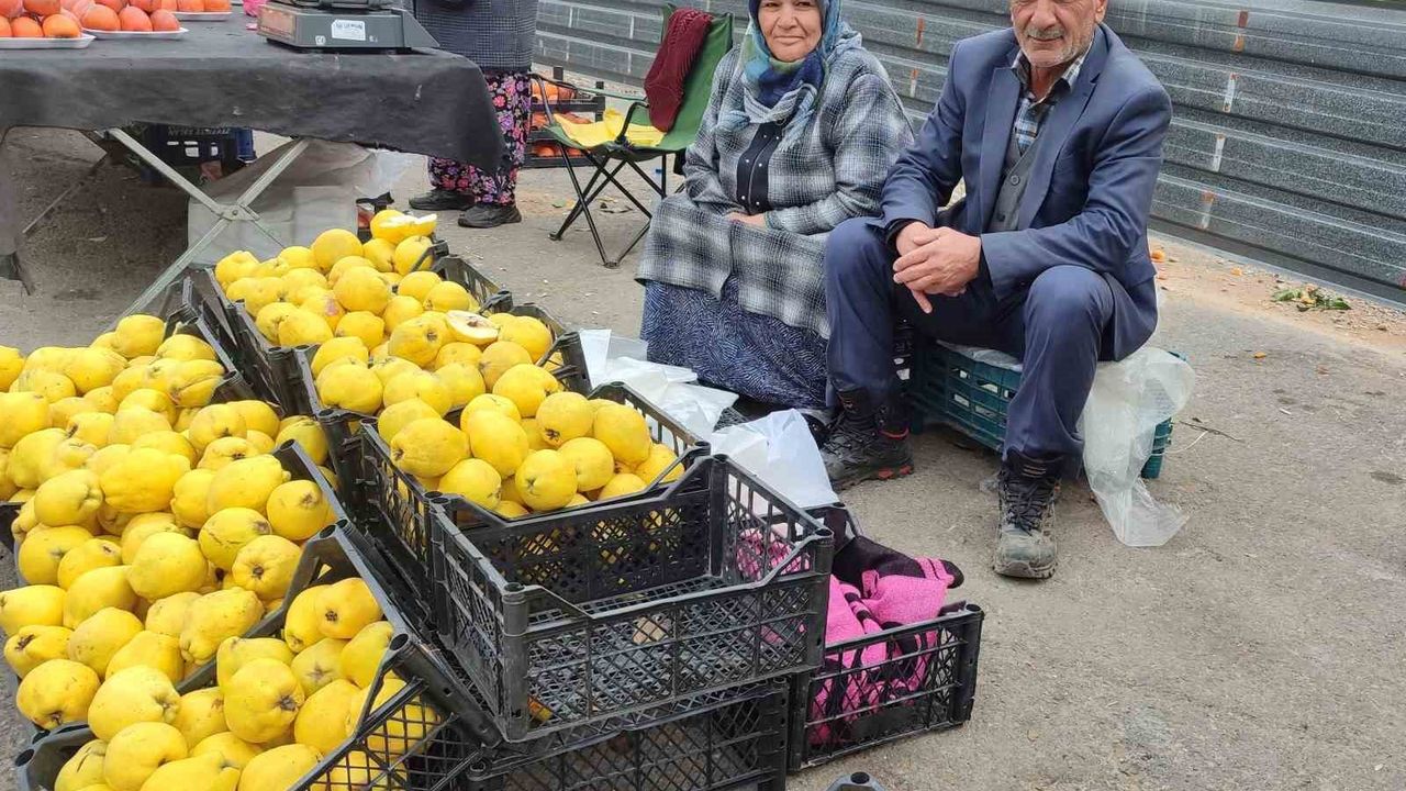 Kahramanmaraş’ta yaşayan Döndü (60) ve Veli Kayaalp (61) çifti, Onikişubat ilçesi sosyete pazarında kendi bahçesinde yetiştirdikleri ayvaları satarak geçimlerini sağlıyor. Yıllardır bahçelerinde yetiştirdikleri ürünleri satarak 7 çocuğunu büyüten çift bunu mutlulukla yaptıklarını belirtiyor.
