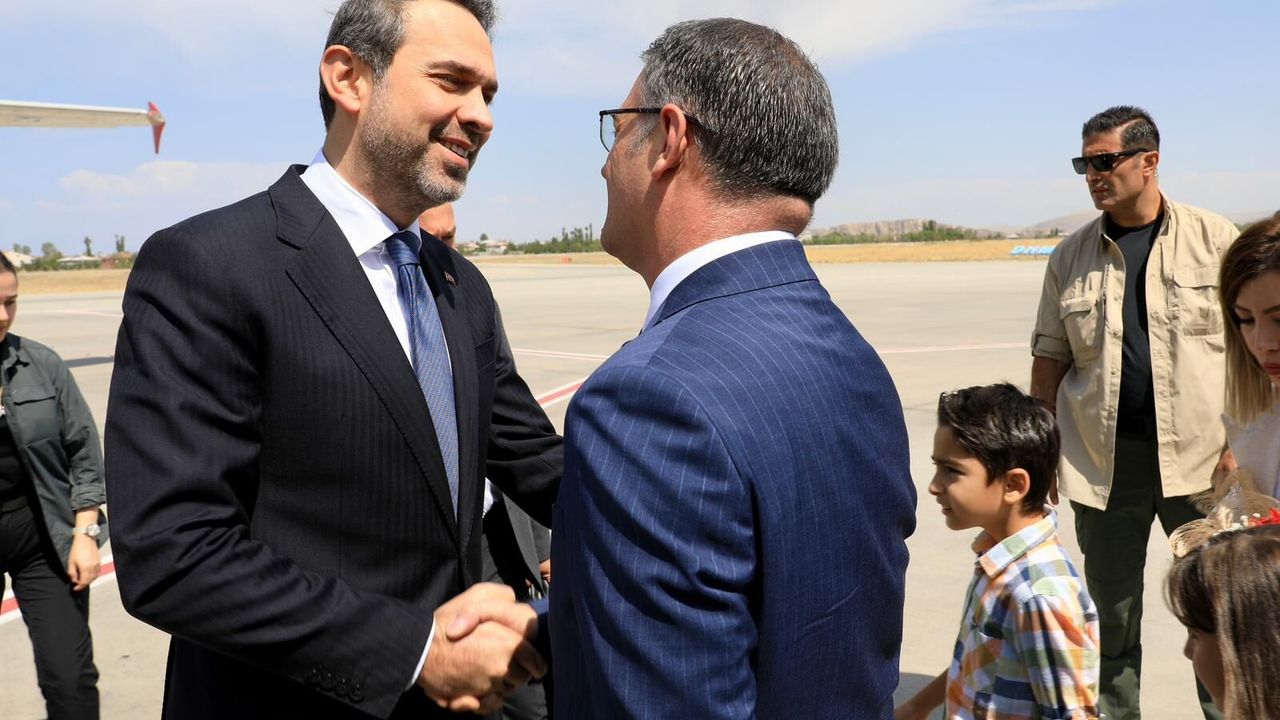 Bazı programa katılmak üzere Van’a gelen Enerji ve Tabii Kaynaklar Bakanı Alparslan Bayraktar , Vali Ozan Balcı tarafından havalimanında karşılandı.