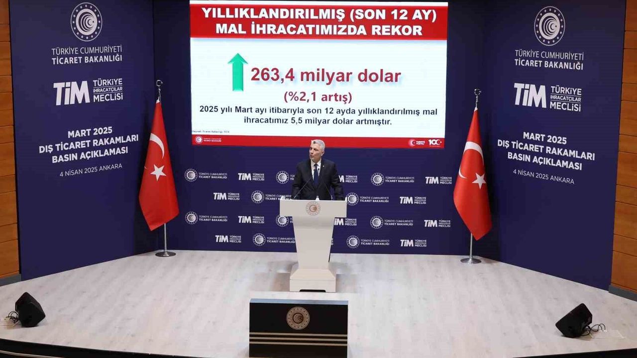 Mart 2025’te elde edilen 23,4 milyar doların aylık bazda Cumhuriyet tarihinin en yüksek 5’inci ihracatı olduğunu dikkati çeken Bolat, takvim etkisi olmasaydı bu rakamın çok daha yüksek seviyelerde olabileceğini belirtti. Bakan Bolat, son 22 ayın 13’ünde aylık ihracat rekoru kırıldığına işaret ederek, "Cumhuriyet tarihimizin, yıllıklandırılmış en yüksek rakamına martta ulaştık. Son 12 ayda, 263,4 milyar dolar mal ihracatı gerçekleştirdik, bu da yıllıkta yüzde 2,1 artış demektir, toplamda 5,5 milyar dolar ilave artış anlamına gelmektedir. 28 Mart’ta 2 milyar 65 milyon dolar günlük ihracatla, Cumhuriyet tarihimizin en yüksek ikinci günlük ihracat rakamını elde ettik" dedi.