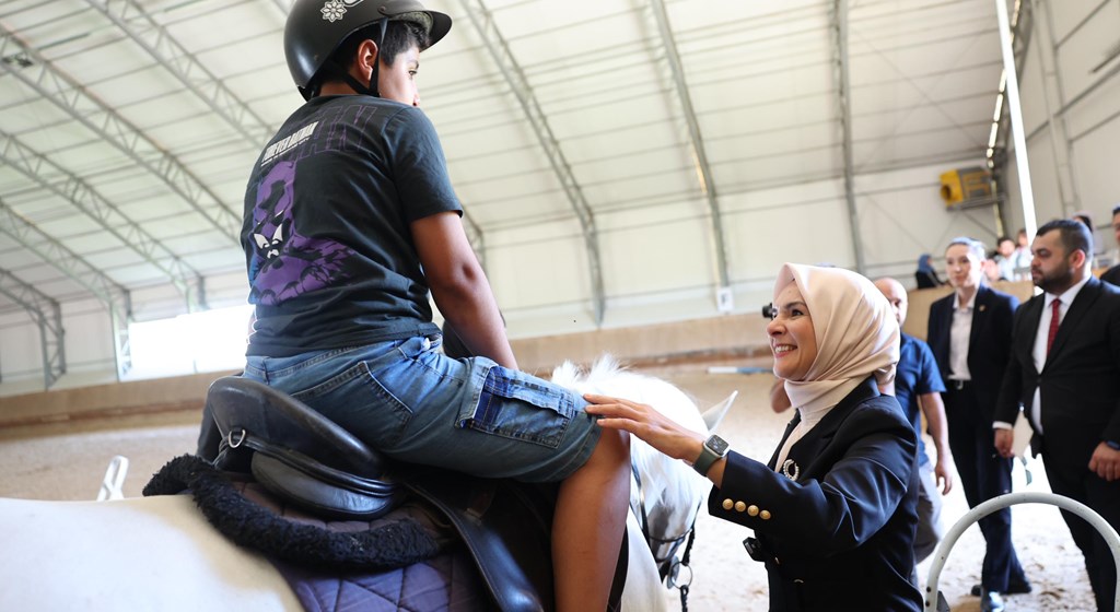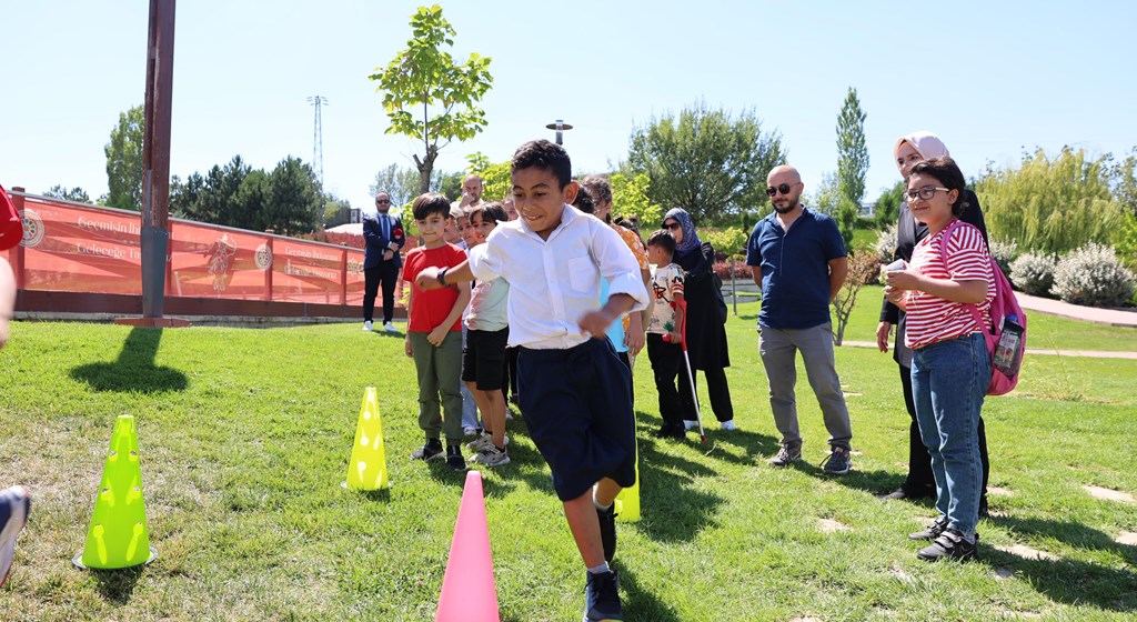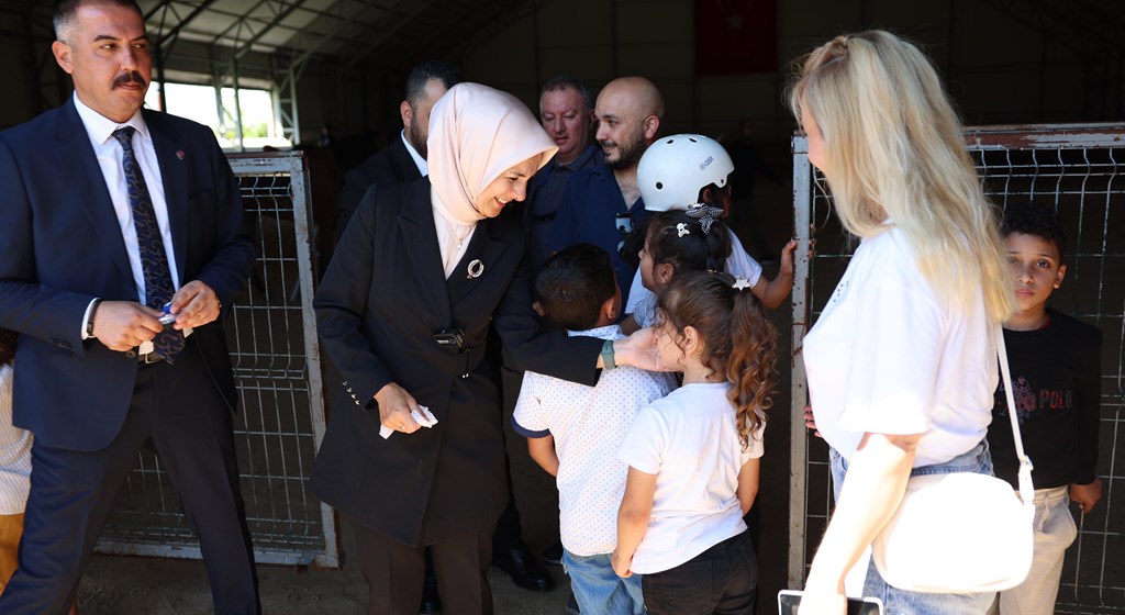 Ardından çim alanda hazırlanan oyun parkurunda çocukların yarışlarını takip eden Göktaş, maneje geçerek ata binen çocuklarla da yakından ilgilendi.