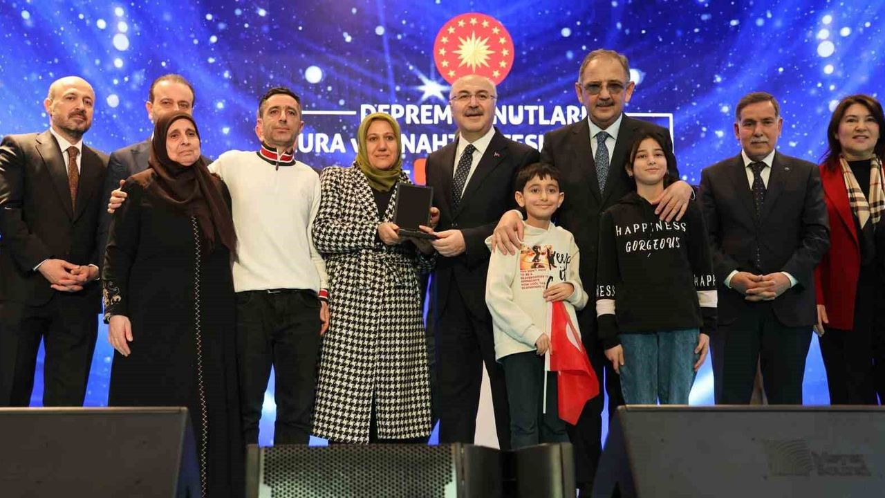 “Cennet gibi bir vatana sahibiz”Depremde hayatını kaybedenler için Kur’an-ı Kerim tilavetiyle başlayan törende konuşan Çevre, Şehircilik ve İklim Değişikliği Bakanı Mehmet Özhaseki, 1 ay içerisinde deprem bölgesinde teslim edilecek konut sayısının 75 bin olacağını anlatarak, “Öncelikle başımız sağ olsun. Ölenlere Allah rahmet eylesin. Bin yıllık Anadolu medeniyetini kurduğumuz bu güzel topraklarda başımıza gelen en büyük felaket bu depremlerdir. Allah bir daha böyle felaket yaşatmasın. Ölenlere rahmet, kalanlara sağlık diliyoruz. Hasarları giderip yaraları sarmak hepimizin ve devletimizin görevi. Mutluyuz, binlerce hak sahibini evlerine kavuşturduk. Gece-gündüz çalıştık ve hiç ara vermedik. Bu 1 ay içerisinde 46 bin konutu, gelecek ay vereceklerimizle birlikte 75 bin konutu vatandaşlarımıza vermiş olacağız. Bütün herkesten helallik alana kadar buradan gitmeyeceğiz. Bu coğrafya en eski yerleşim yeri olarak geçiyor. Medeniyet bu topraklardan, bilim bu topraklardan yayılmış. Cennet gibi bir vatana sahibiz. Bizim bu topraklarımızın da 2 kusuru var birisi depremsellik, diğeri de fitne odakları bitmiyor” ifadelerini kullandı.