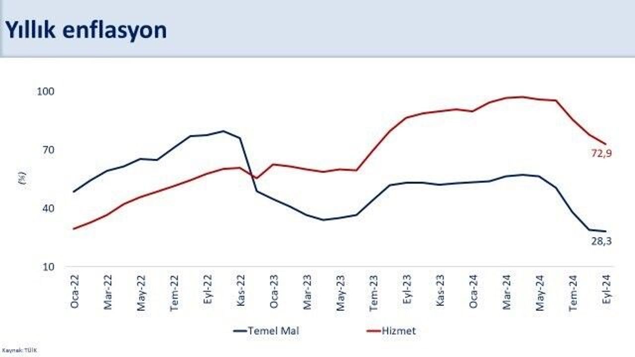 Hazine ve Maliye Bakanı Mehmet Şimşek, TÜİK tarafından açıklanan eylül ayı enflasyon verilerine ilişkin sosyal medya hesabından açıklamalarda bulundu. Bakan Şimşek, enflasyonu düşürmenin sadece hayat pahalılığı sorununu çözmeyeceğini, aynı zamanda vatandaşın refahını kalıcı olarak artıracağını vurguladı. Yıllık enflasyonun eylülde bir önceki aya göre 2,6 puan düşüşle yüzde 49,4’e gerilediğini hatırlatan Şimşek, “Temel mal enflasyonu yıllık yüzde 28,3 ile görece düşük seviyedeyken geriye dönük fiyatlama davranışı kaynaklı katılık, hizmet enflasyonunda düşüşün yavaş gerçekleşmesine neden oluyor” açıklamasında bulundu.