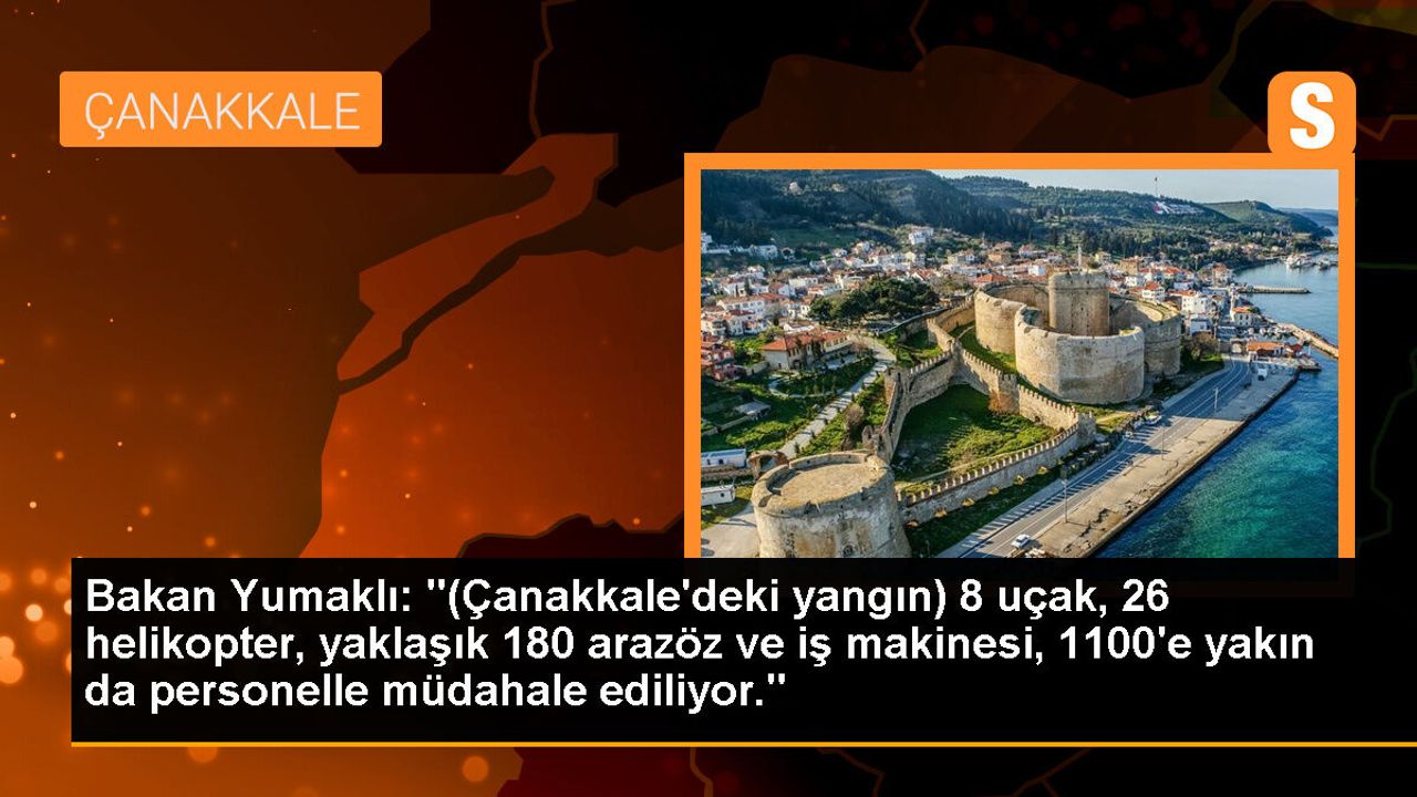 Bakan Yumaklı: "( Çanakkale'deki yangın) 8 uçak, 26 helikopter, yaklaşık 180 arazöz ve iş makinesi, 1100'e yakın da personelle müdahale ediliyor."