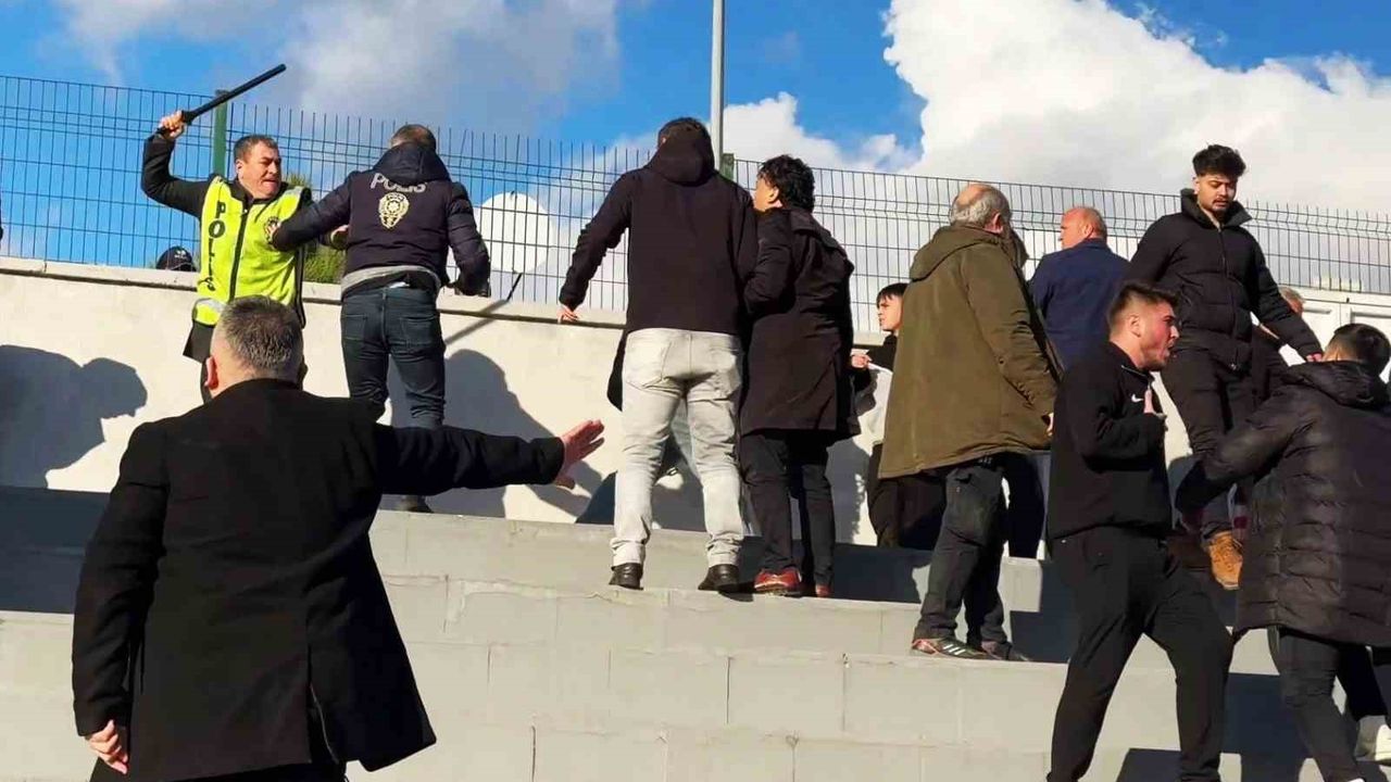Maçı takip eden AK Parti Bartın Milletvekili Yusuf Aldatmaz’ın da yaşanan taşkınlığı önlemeye çalıştığı görüldü.