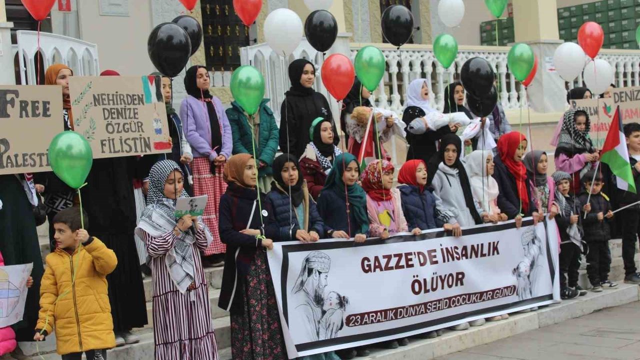 Denizli’de 10 sivil toplum kuruluşunun desteğiyle Delikliçınar Yeni Camisi önünde “Gazze’de Çocuk Olmak” konulu basın açıklaması yapıldı. “Gazze’de İnsanlık ölüyor” yazılı pankart taşıyan onlarca çocuk, İsrail vahşetini protesto etti.