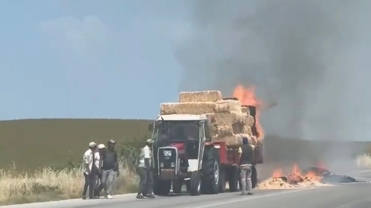 Edirne’nin Lalapaşa ilçesine bağlı Hanlıyenice köyü yakınlarında, balya yüklü bir römorkta yangın çıktı. Kısa sürede büyüyen alevler, çevredeki tarım arazilerine sıçradı.