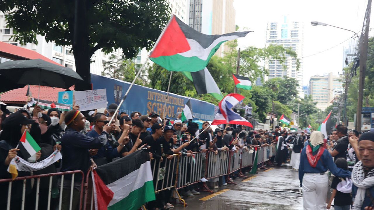 Ellerindeki pankartlar ve Filistin bayraklarıyla büyükelçiliğe yürüyen grup, daha sonra İsrail ordusunun Gazze’ye gitmekte olan yardım filosuna yaptığı müdahaleyi ve İsrail'in Gazze'deki saldırılarını protesto etti. "Tayland Filistin'in yanında" çağrısıyla yapılan eylemde, Gazze'de kalıcı ateşkes çağrısı yapıldı ve Tayland hükümetine İsrail’e yönelik ekonomik yaptırım uygulama çağrısında bulunuldu. Zaman zaman sağanak yağış altında gerçekleştirilen gösteride eylemciler, "Özgür Filistin" ve "Filistin yalnız değilsin" sloganları attı. Olaysız geçen eylemde Tayland halkı ve sivil toplum kuruluşlarının yanı sıra, yabancı katılımcıların da yer aldığı görüldü.