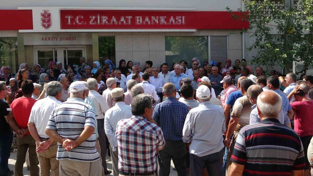 Denizli’nin Pamukkale ilçesine bağlı Akköy Mahallesi’nde bulunan kamu bankası şubesinin başka bir yere taşınacağını öğrenen çiftçiler, karara tepki gösterdi. Banka önünde oturma eylemi yapan kalabalık, karardan vazgeçilmesini talep etti.
