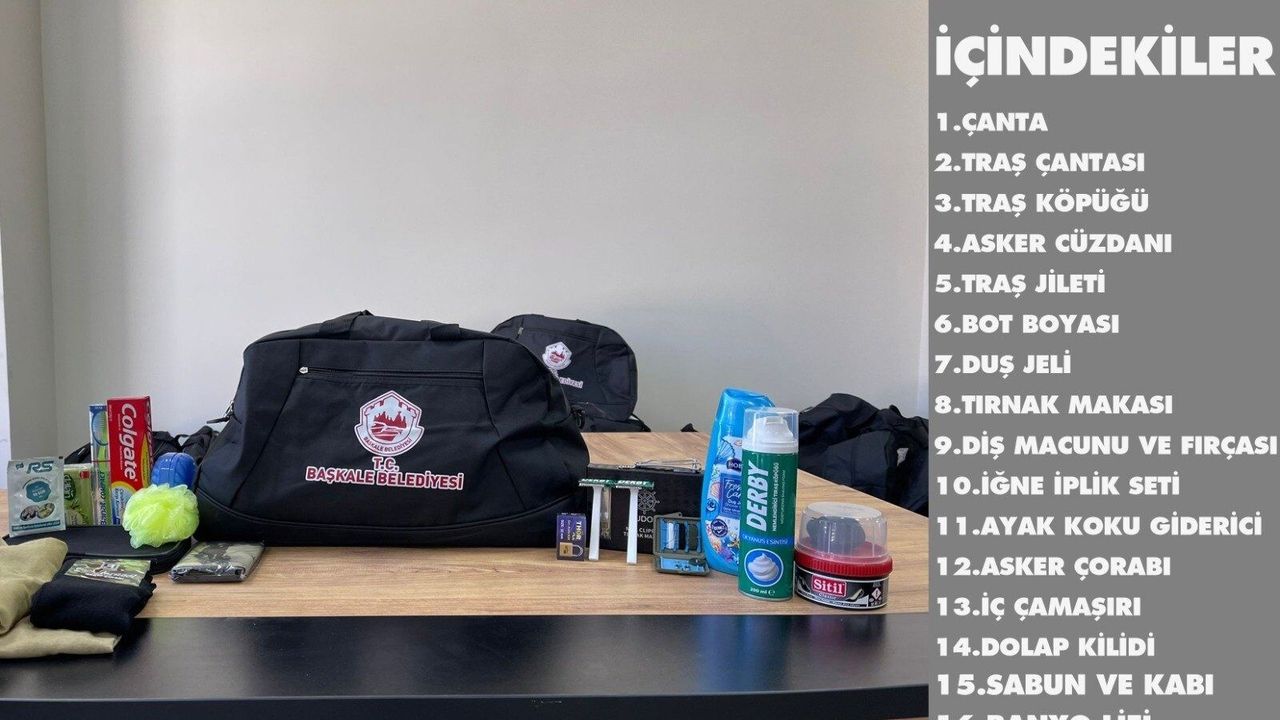 Belediye tarafından hediye edilen çantanın içinde bir askere gerekli olan malzemeler yer alıyor. Başkale’de ikamet eden asker adaylarının belediyeye gidip çantalarını alabiliyor.