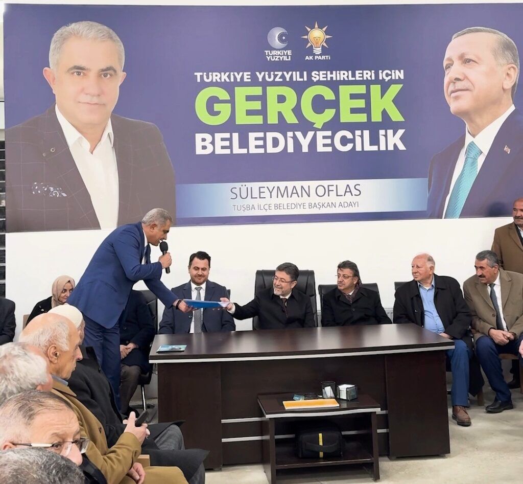 Bakan Yumaklı ise Van'da ve Tuşba'da olmaktan mutlu olduklarını belirterek Başkan Adayı Oflas'a başarılar diledi.